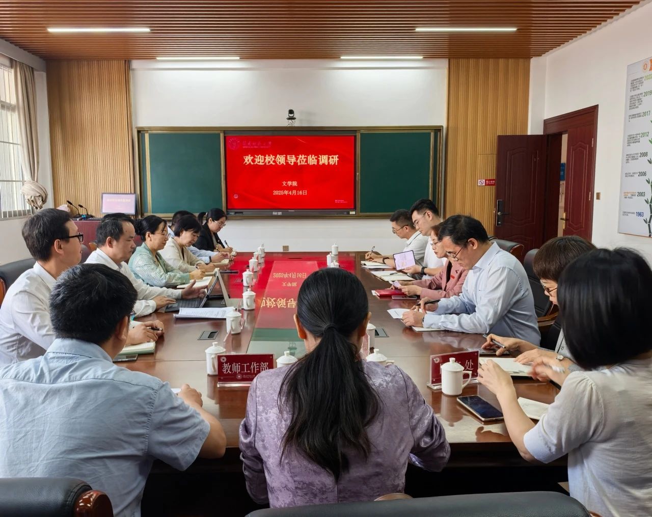 此次调研为太阳成城集团tyc234cc锚定“固本强基、创新突破”的战略方向。学院将以党建与学科“双轮驱动”为引擎,推动党建与业务深度融合,加速向“新文科”转型,构建“主修+辅修+微专业”复合培养体系,强化交叉学科课程供给,提升师生跨学科实践能力,以钉钉子精神推动各项部署落地见效,全力打造特色鲜明的文科教育高地。