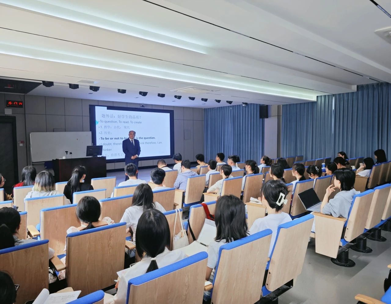 讲座伊始,王泉抛出“好学生的品质?”问题,引导同学们明白思考的重要性。他紧接着提出“universe/multiverse/mataverse”的概念,对人类与机器的关系展开细致的阐释。对“数字主体的背景:原/元宇宙”进行介绍,重点讲解了“元宇宙”的基本概念、元宇宙的设备和元宇宙中的分身问题。同时,结合大量的实例如“网红AI孙某”、影片《Upload》和“文生视频大模型Sora”等对数字分身、数字主体和镜像主体中涉及了的重要问题进行回应。其次,他还重点分析Hayles后人类三阶段,对人类世界和动物世界的区别进行解释;从水的形状入手,引出量子叠加的概念,并从微观和微观的角度分别对粒子和世界进行解答。最后,王泉从数字主体/数字分身问题回到现实世界中来,他希望同学们能从数字世界去窥探现实世界的裂缝。