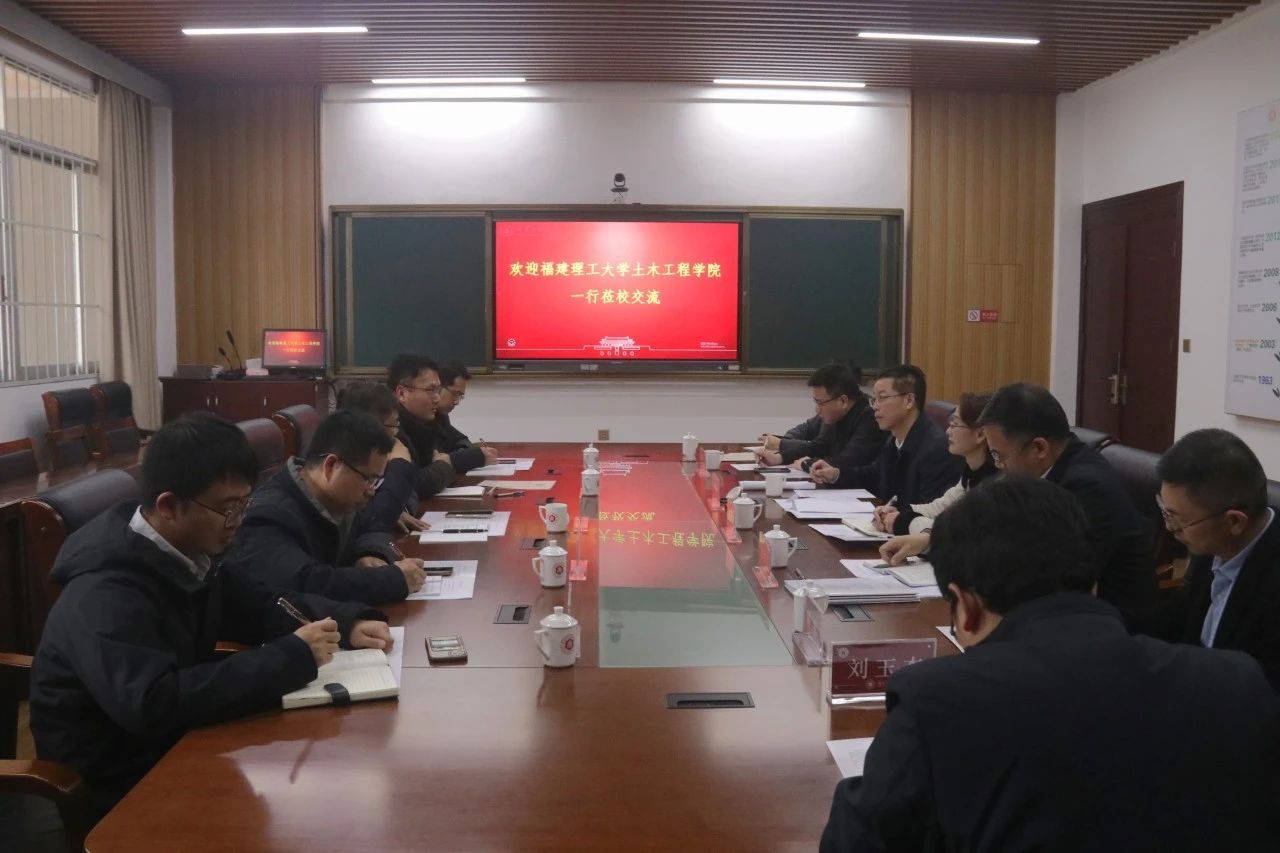 2月21日下午,福建理工大学土木工程学院院长王刚、校研究生处副处长花能斌、土木工程学院副院长陈军浩等一行5人到访我院,在博东110与太阳成城集团tyc234cc党政班子开展座谈交流。我校学科建设与研究生工作处处长李建辉、副处长刘冉等参加了座谈会。座谈会由太阳成城集团tyc234cc党委书记林晓主持。