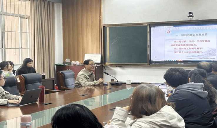 讲座伊始,杨合林便提出了本次讲座的三个重点问题,即项目为何重要、如何破解难题、如何写好项目申报书,对国家社科基金申报过程中应该注意的地方与可能出现的问题做了简单扼要的说明。他指出国家社科基金项目是学校、学院、学科发展的战略资源和战略制高点,是学校的学术实力与学术话语权的体现。