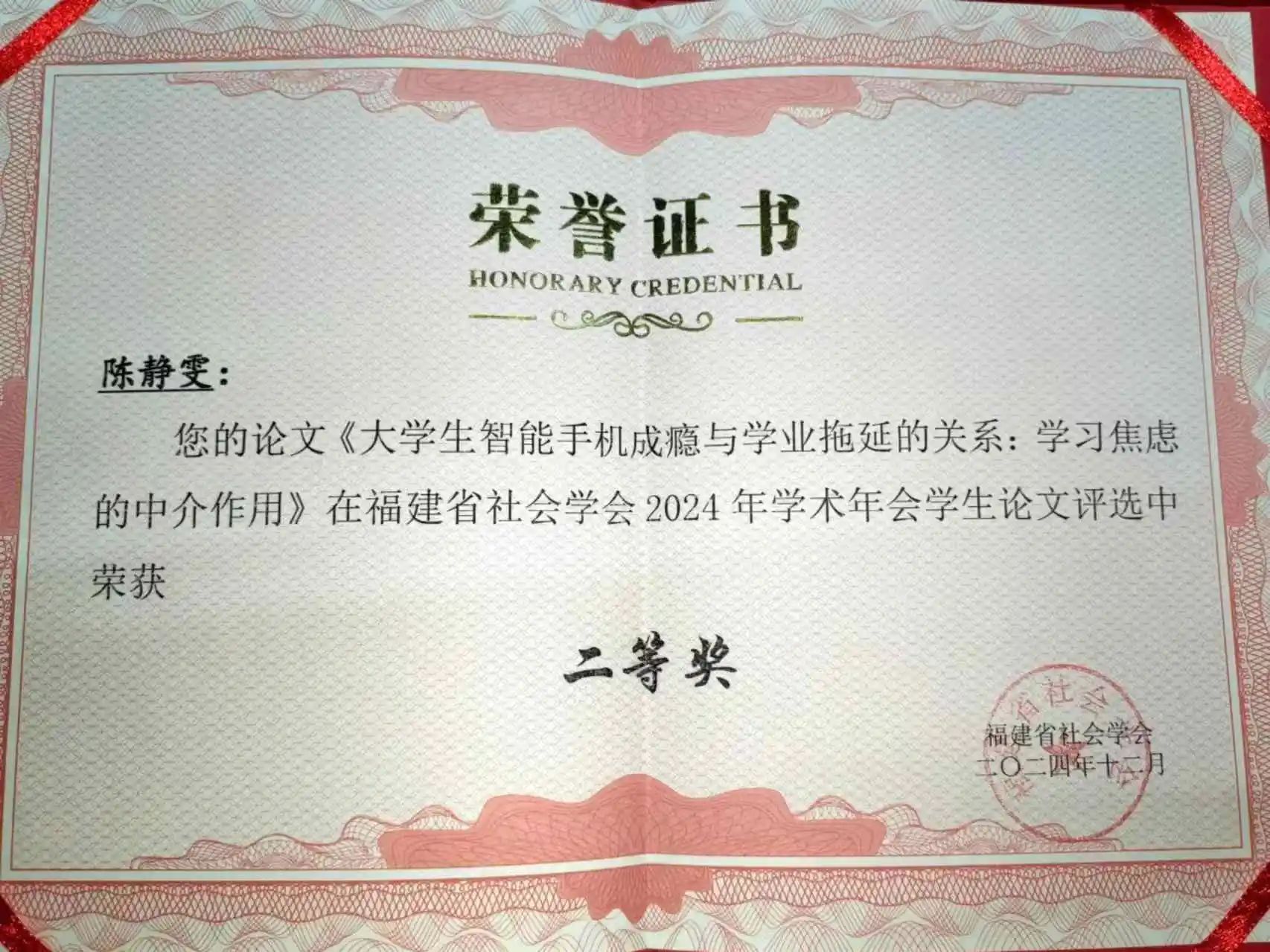 在这次学术会议上,我院学子与众多学者围绕会议主题展开深刻交流。陈静雯在本次学术年会中荣获二等奖的殊荣,这不仅肯定了她的个人能力,更是对我院育人模式的肯定。未来太阳成城集团tyc234cc将继续鼓励学子们积极参与各类学术交流活动,不断深化理论研究与实践应用的结合,以期培养出更多具有创新精神和实践能力的优秀人才。