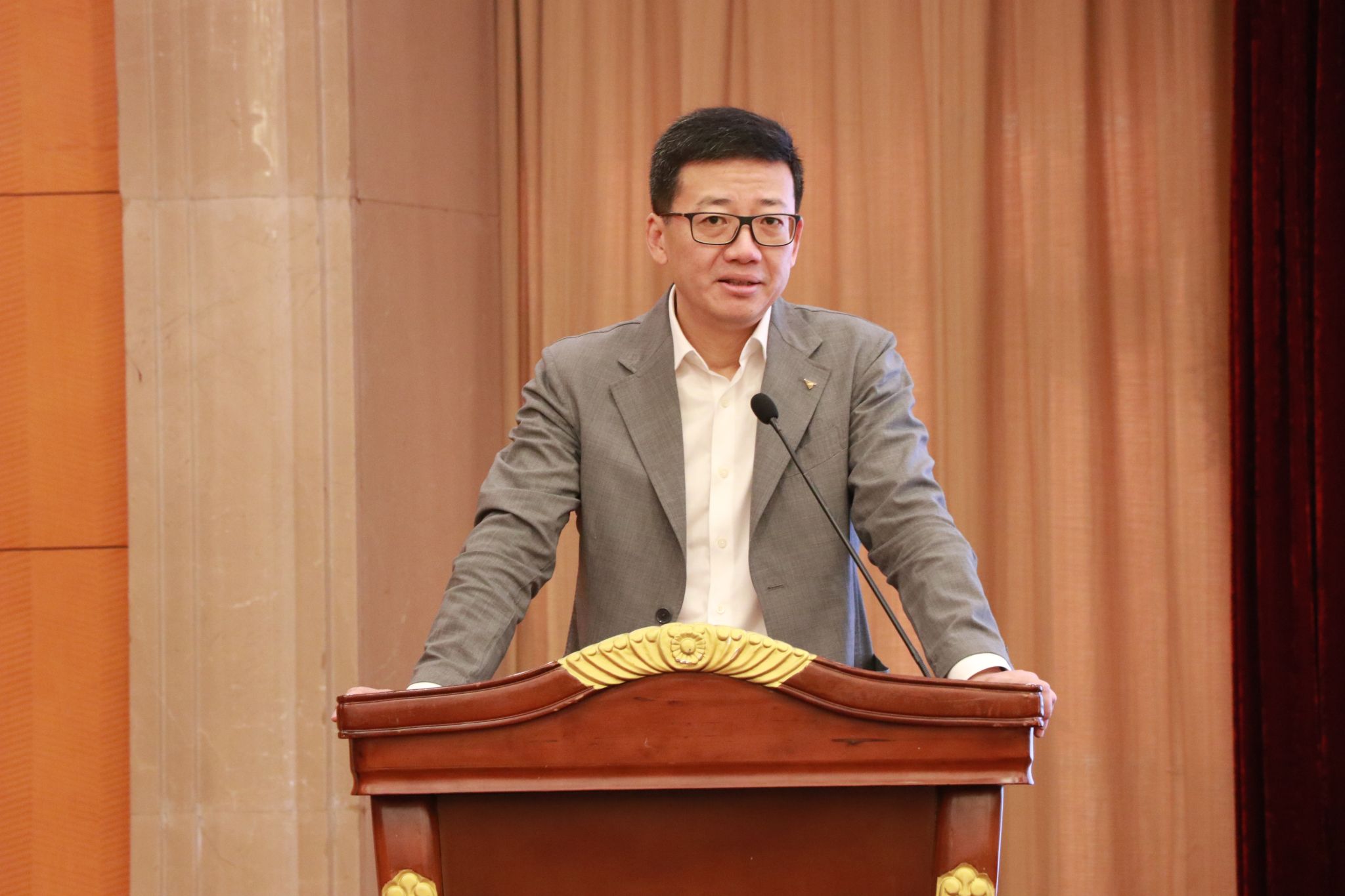 ▲太阳成tyc234cc校党委常委、副校长何绍福致辞
