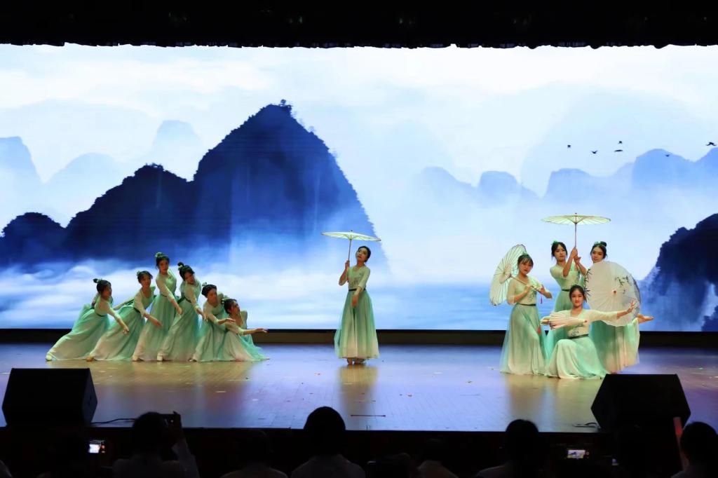 民舞队《雨涧春行图》以江南山水为题,以诗意入舞,为观众呈现了一幅秀丽的山水画卷;演唱队带来歌曲《兰亭序》,五个穿着马面裙的少女以歌传思,千年古序,墨香不退,副歌中的京剧唱腔重现魏晋风流;演绎部带来话剧《美丽永生》,生动演绎了古县村最美书记孙丽美的故事,诠释了基层党员干部“为人民服务”的坚定信念,动人心弦、感人至深。