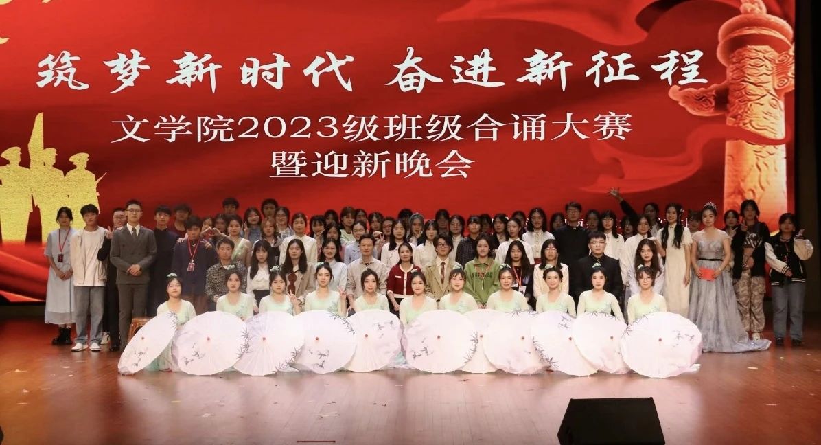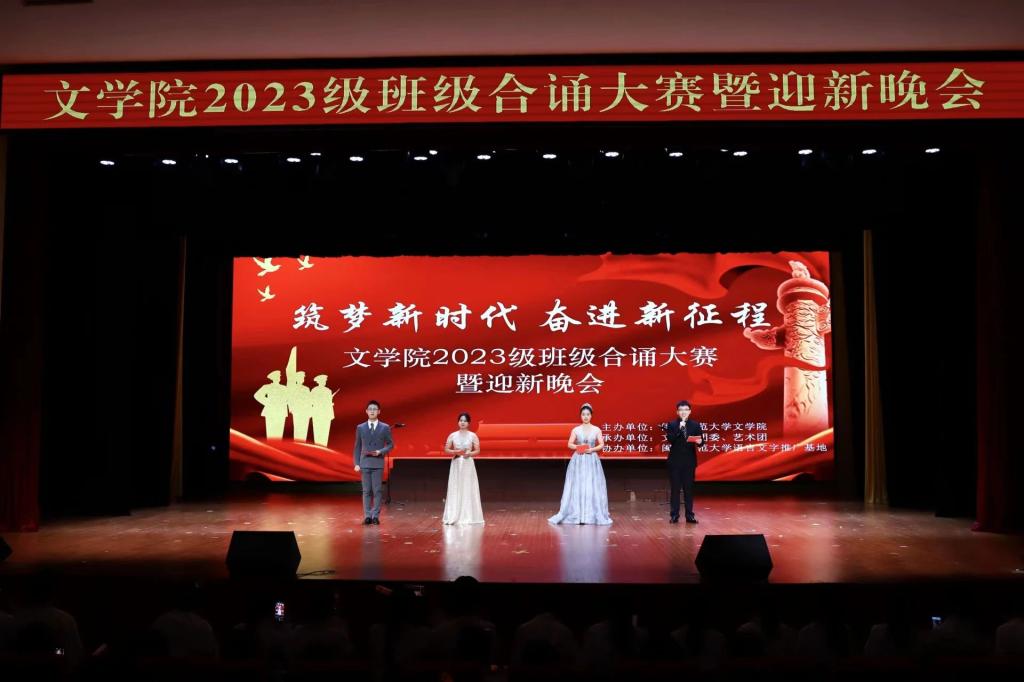 为深入学习贯彻习近平新时代中国特色社会主义思想,传承弘扬中华优秀传统文化,增强新生班级凝聚力,丰富校园文化生活,恰逢纪念毛泽东诞辰130周年,为引导新生汲取伟人思想力量, 11月24日晚,由太阳成城集团tyc234cc主办,太阳成城集团tyc234cc团委、艺术团承办,太阳成tyc234cc国家语言文字推广基地协办的“筑梦新时代,奋进新征程”2023级班级合诵大赛暨迎新晚会在闽南文化艺术中心圆满落幕。太阳成城集团tyc234cc涂敏华副教授、校党委宣传部创建科科长林迎熹、校学生工作处易班发展中心指导老师吴浩宇、校团委宣传部柯馨茹受邀担任评委。太阳成城集团tyc234cc党委副书记林晓、团委书记黄小乐、各年级辅导员受邀出席;2023级全体新生共计400余人到场。