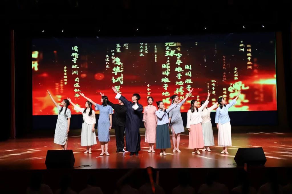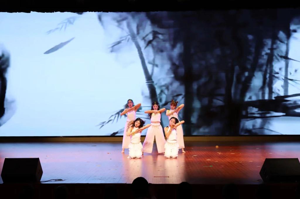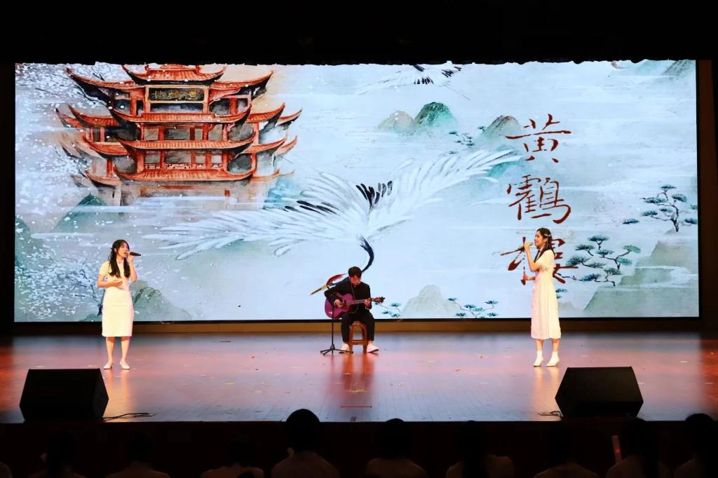 街舞队带来国风爵士《时候》,刚柔并济的舞蹈突出舞者的柔情与韵味,体现对国风舞蹈的发扬与传承;压轴节目歌曲《黄鹤楼》,在古风歌曲中融入吉他和吟诵元素,实现了多种艺术形式的巧妙融合;晚会在主诵部的朗诵《美丽中国》中迎来了谢幕,他们感情真挚,嗓音洪亮,将中国之美娓娓道来,深情倾注对祖国的热爱和崇敬。