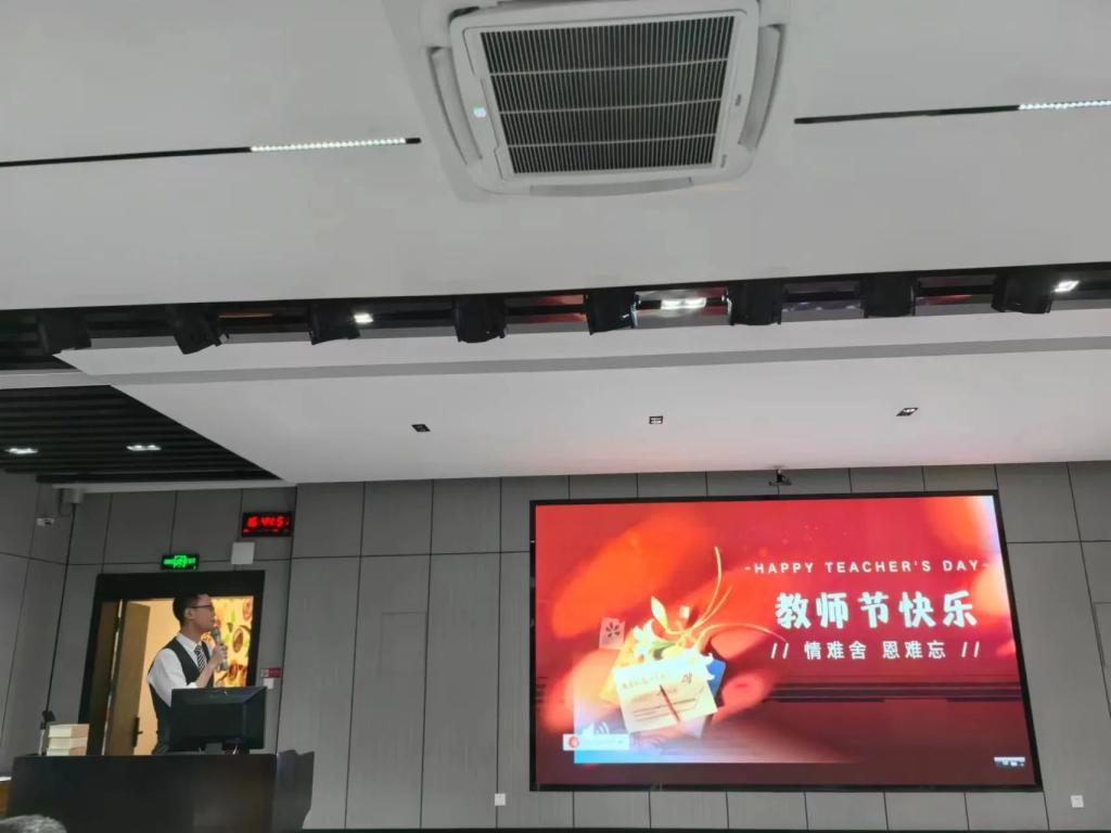 活动上半场在博东109进行,由汉语国际教育系主任陈瑞松主持。艺术团的同学们以一首《教师礼赞》代表学院广大学子向老师们送上最真挚的节日祝福。