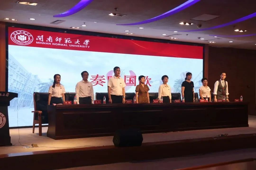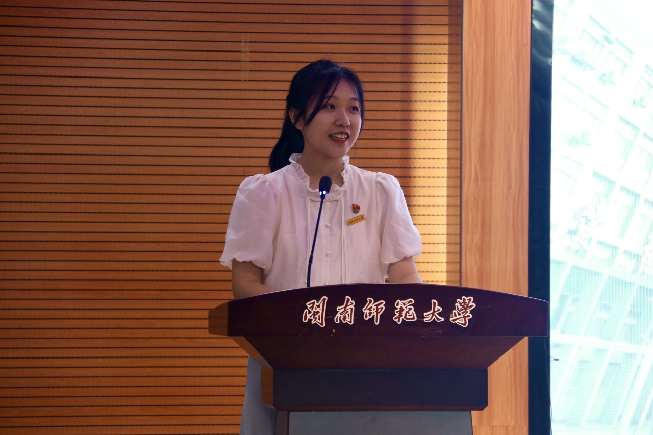 典礼下半场,学院领导为新生代表佩戴校徽,校徽不仅代表着“闽南师大人”这一光荣的身份,更承载着闽南师大人的初心和使命,饱含着学校对师生的祝福与期望。