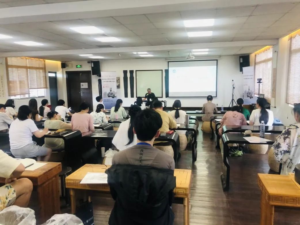 王朝华教授从身边的例子,亲切的解释艰涩的文句,比如《诗经》的内容,孔子曾认为“可以兴、可以观、可以群、可以怨”。王朝华从“怨”的层面出发,认为直面现实是诗人的基本态度。而这种基本态度,为后来作家所继承,许多的经典文学作品都具有深重的忧患意识,他进一步以《风雨》为例,详细介绍从汉时期至今学者对《风雨》中“喈喈”“胶胶”“晦”“鸡鸣不已”的不同阐释,并对此进行辨析,同时提出自己的观点。通过王朝华教授深入而富有感情的介绍,学员们深刻感受到了《诗经》作品的意蕴和温度,并对这部经典有了更深入的理解。这为他们未来在《诗经》弦歌艺术方面的学习奠定了坚实的基础。