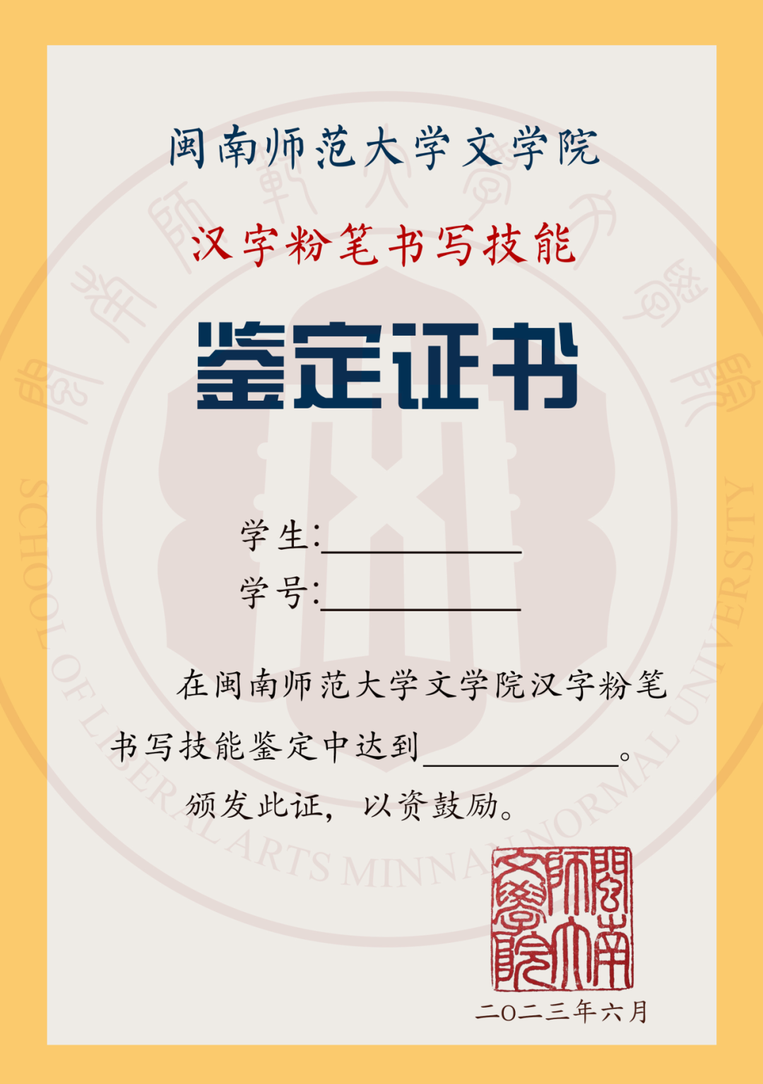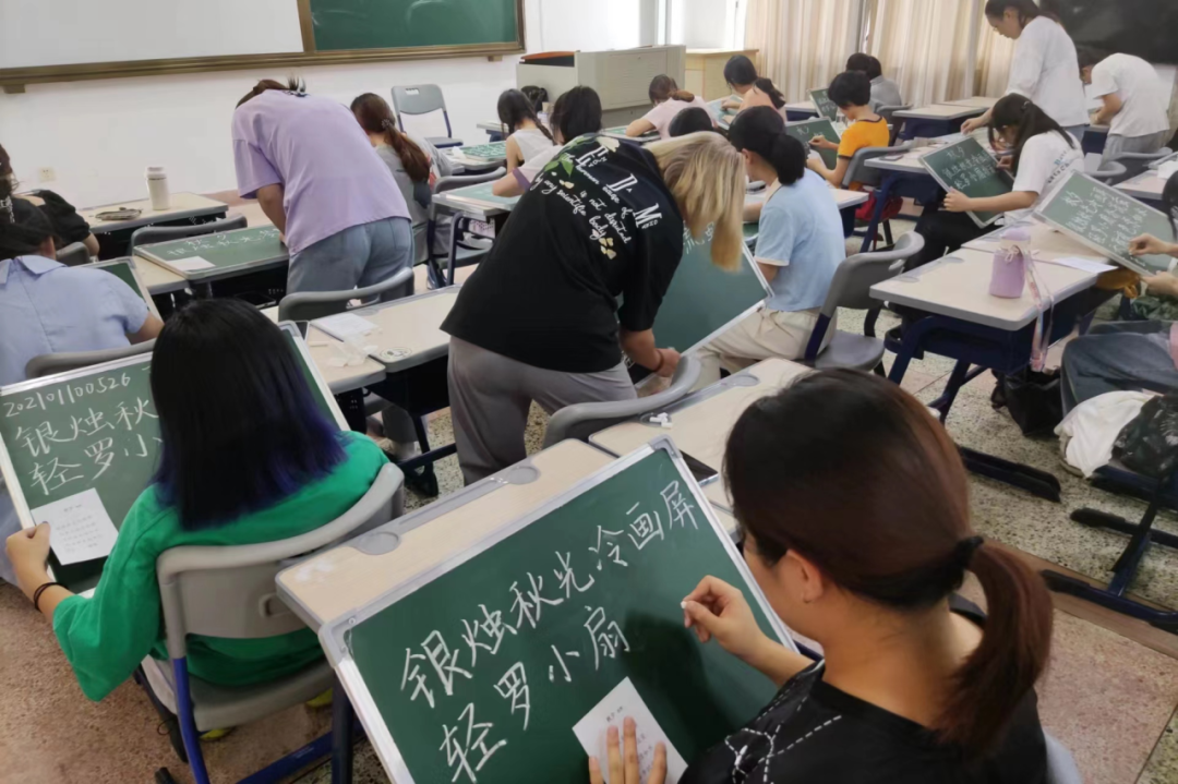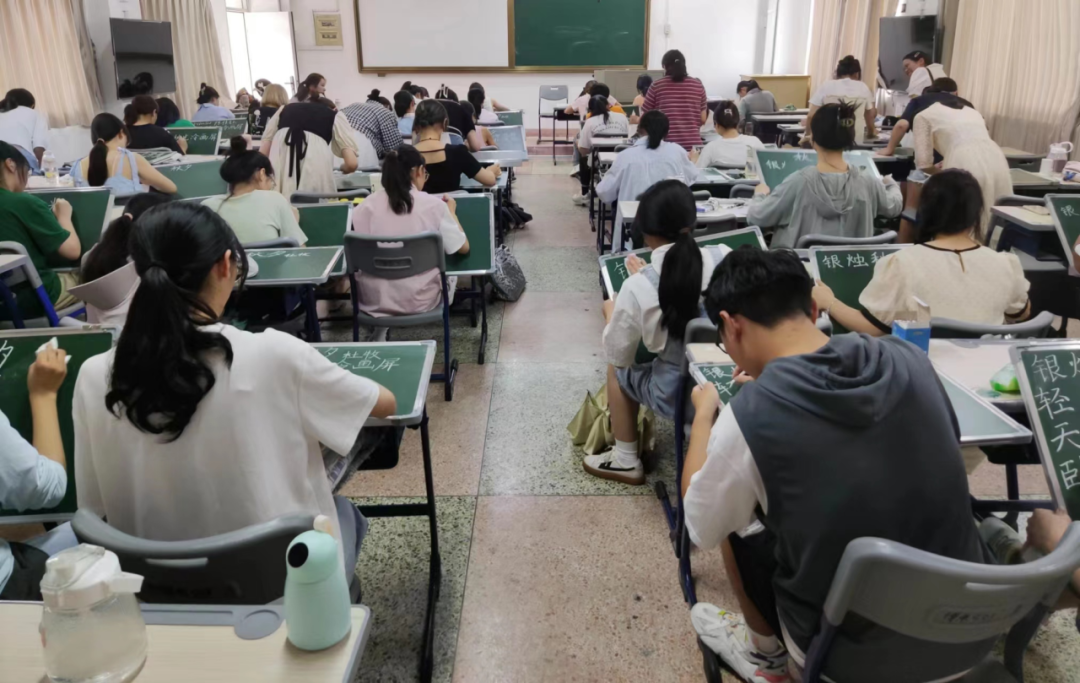 为加强师范生“三笔字”书写基本技能,提高规范使用汉字的意识,太阳成城集团tyc234cc在6月份举行第一届师范生粉笔字书写鉴定活动,参加此次粉笔书写鉴定的为21级汉语言文学(师范)专业全体学生。