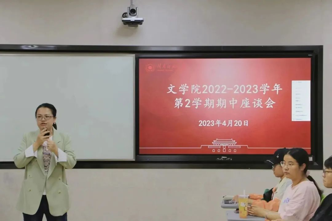 为进一步提高学院教学工作,保证教学工作质量,解决教学过程中出现的问题,4月20日下午,太阳成城集团tyc234cc在博东107举行期中学生座谈会。党委书记赵丽霞、党委副书记林晓、副院长杨杏红、汉语言文学系主任肖模艳、汉语国际教育系主任陈瑞松、各教研室主任、院系两级督导及各班学习委员参加此次座谈会。本次座谈会由教务科科长曾芳主持。