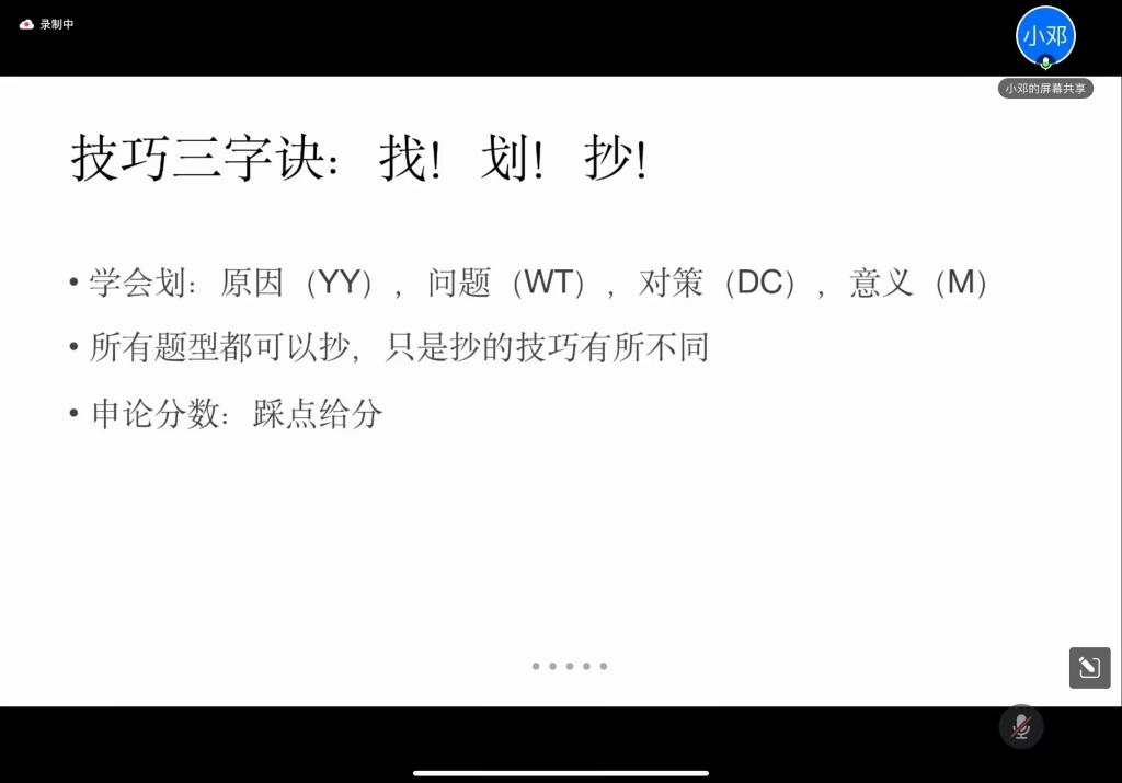 讲座伊始,邓舜怡老师围绕公务员申论考试的话题,分享了在素材积累、素材整理、题目练习等方面的经验,推荐了相关公众号和应用软件,强调了硬笔字书写的重要性,鼓励同学们要利用零碎时间练字。