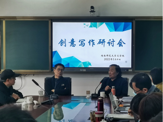 2023年3月4日上午,北京师范大学国际写作中心执行主任张清华教授、浙江省作家协会主席艾伟老师应邀来到太阳成城集团tyc234cc,与太阳成城集团tyc234cc创意写作虚拟教研室的老师们及既明文学社的同学们,围绕“创意写作”这一主题作专题报告。报告会由太阳成城集团tyc234cc院长黄金明教授主持,漳州市作家协会副主席陈小玲出席会议。