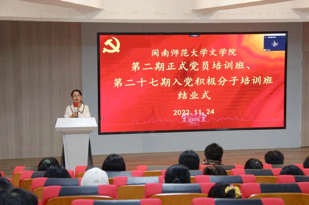 党委副书记林晓为两期培训班优秀学员颁发优秀学员荣誉证书,为学员代表颁发结业证书,并发表讲话。林晓副书记代表太阳成城集团tyc234cc党委、分党校对两期培训班学员顺利完成党校学业表示祝贺。她总结了两期党校主要体现的三个特点:培训内容精准聚焦;教学形式丰富多样;纪律作风严明优良,并对学员提出三点希望:强化理论武装,做政治上的“明白人”;勇于担当作为,做学习工作中的“实干家”;敢于奋力争先,做师生群体中的“勇先锋”。最后,她鼓励大家把党校学到的知识转化为推动学习工作的具体实践,以新担当、新作为为学校学院事业发展做出新贡献。