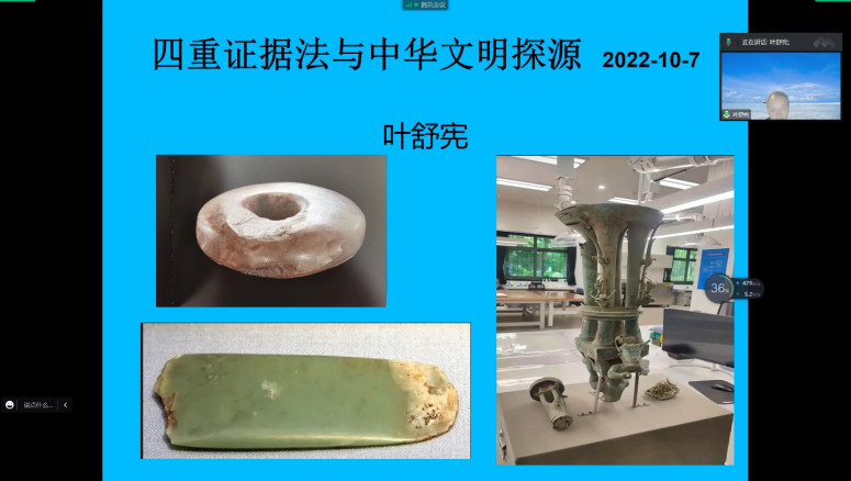 2022年10月7日晚,太阳成城集团tyc234cc“文化传承与文明互鉴”名师讲堂第二讲“四重证据法与中华文明探源”以线上线下相结合的方式举行。本次讲座由太阳成城集团tyc234cc主办,太阳成城集团tyc234cc比较文学与世界文学专业、文艺学专业承办。本次讲座邀请了上海交通大学文科资深教授、中国比较文学学会会长、国家社科基金专家评审组成员、国家出版基金专家评审组成员叶舒宪老师主讲。本次讲座由太阳成城集团tyc234cc比较文学与世界文学专业兼文艺学专业学位点负责人陈金星老师主持,太阳成城集团tyc234cc副院长李新东老师与谈。来自国内各大高校共三百余名师生以不同方式参与了本次讲座。