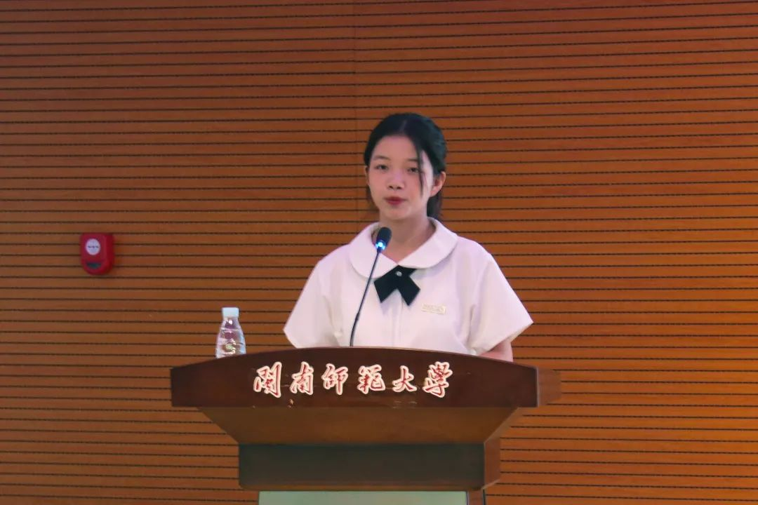 教师代表刘婉晴分享了她的学习、从教经历,并建议新生进入大学后应当及时适应环境、转变思维、创新观念。老生代表陈煜莹激励同学们应时刻保持谦虚谨慎,勤勉刻苦的求学态度,切实提高学术能力与专业素养,抓住机遇,迎接挑战,开拓进取,勇于创新。新生代表毛茜期望与同学们共同努力,将奋斗作为青春最靓丽的底色,让行动成为青年最有效的磨砺,担当起新时代青年、新中文人的责任与使命。