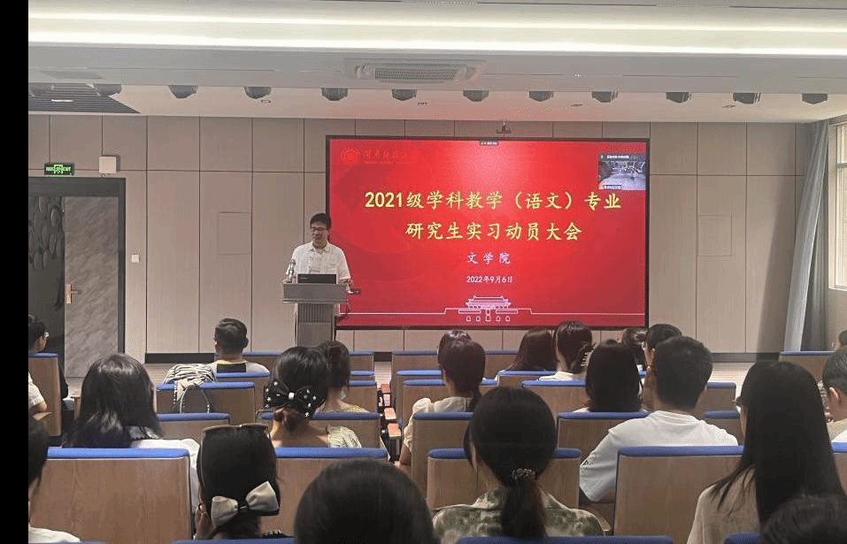 为推进实习工作的顺利开展,引导学生以更加良好的精神面貌和饱满的热情迎接即将到来的专业实习,2022年9月6日上午10点,太阳成城集团tyc234cc于博东109召开2021级学科教学(语文)教育实习动员大会,太阳成城集团tyc234cc副院长李新东、各实习点带队老师以及2021级学科教学(语文)全体学生参加本次大会。