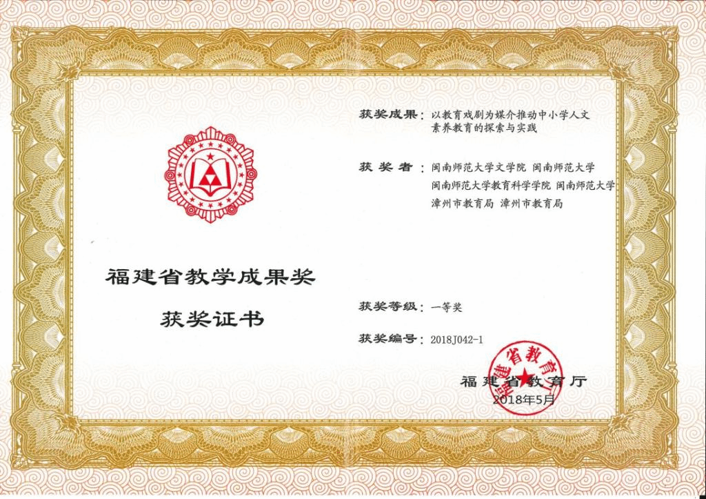 2018年福建省基础教育教学成果奖一等奖