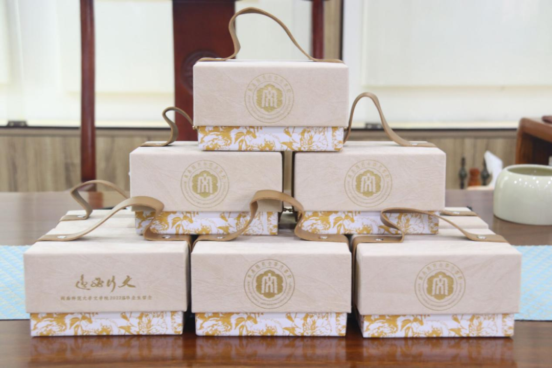 怀表的礼盒上,一面印有本届毕业纪念品的主题——“文行必远”四字,是林继中老师亲笔题写的祝福;礼盒的另一面印有太阳成城集团tyc234cc的院徽,从此,太阳成城集团tyc234cc的岁月浓缩在院徽所在的圆中,有书香,有花香,听钟声,铭心声。