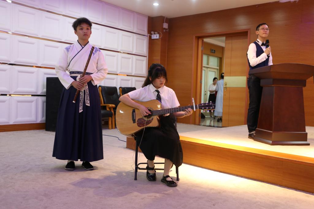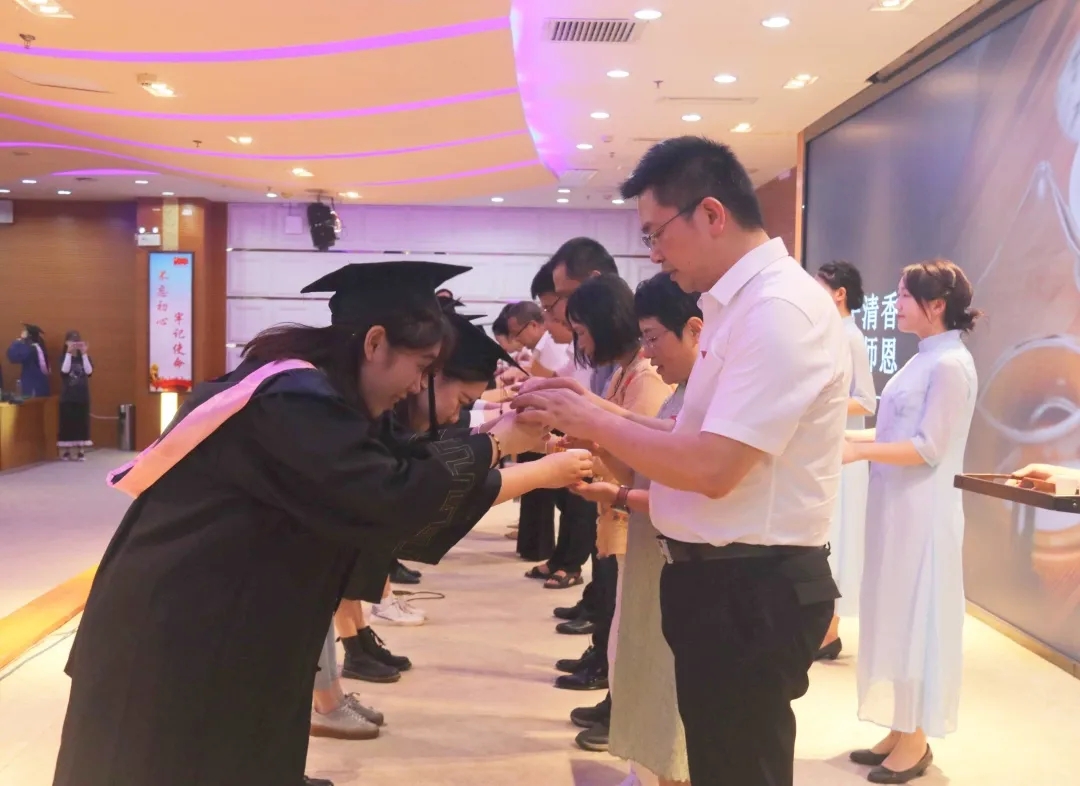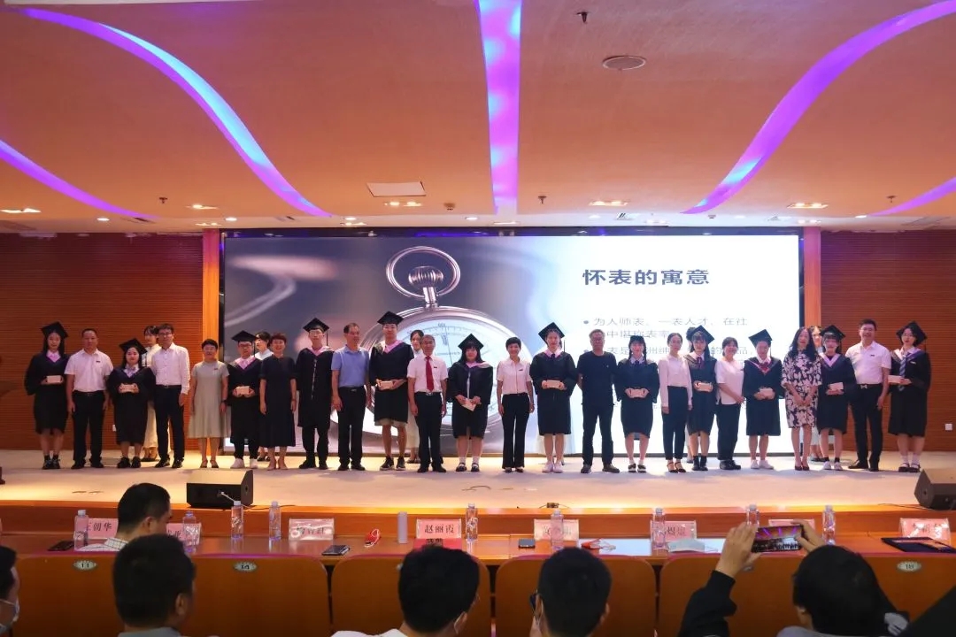 典礼接近尾声,学院老师为在场毕业生送上定制纪念怀表,希望中文学子为人师"表"、一"表"人才、在社会中堪称"表"率。由在校生代表组成的乐队为毕业生献上《同桌的你》《凤凰花开的路口》《送别》等歌曲。凤凰花开,弦歌不辍,将情谊装进礼盒,学院与学子们换一种方式携手。
