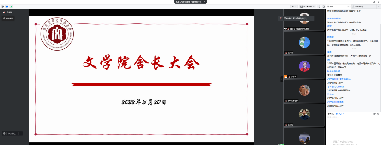 3月20日晚,学院召开全院舍长大会。学院党委副书记谢斌斌,辅导员以及全体宿舍长参加会议。
