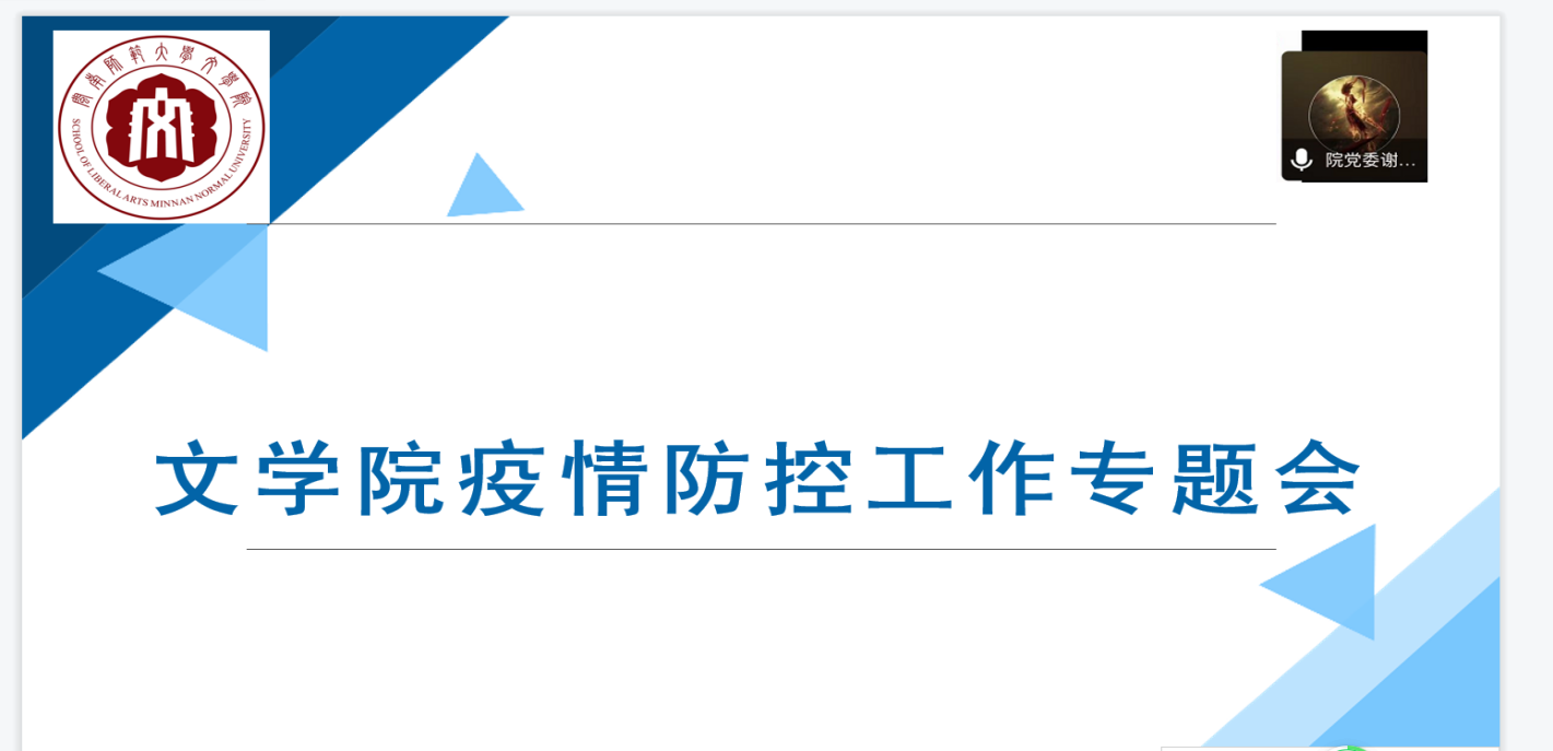 3月19日下午,学院召开线上学生疫情防控工作专题会,落实省教育厅以及学校的要求,再部署学院的学生疫情防控工作。学院党委副书记谢斌斌,辅导员以及全体班长团支书参加会议。