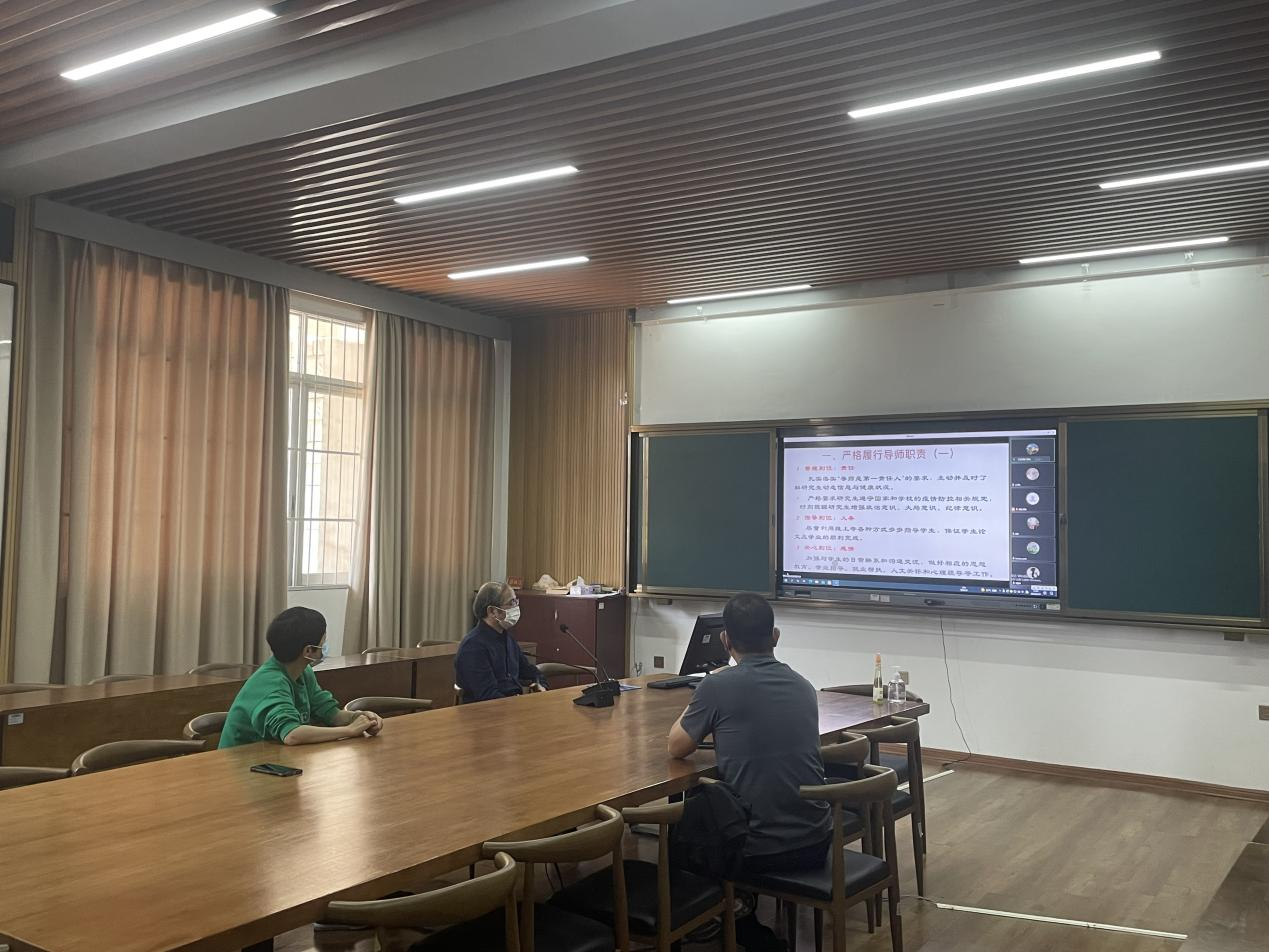 首先,院党委副书记谢斌斌总结开学以来研究生在校学习、生活、工作、管理等情况,通报近期研究生出现的相关问题,解读学校疫情防控有关政策、措施及要求,要求各研究生导师配合学院开展好研究生培养、管理等工作,执行好疫情防控等相关规定。