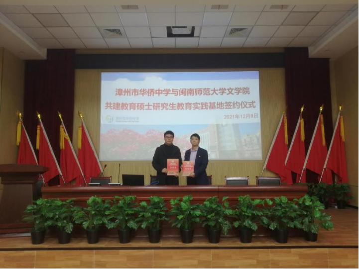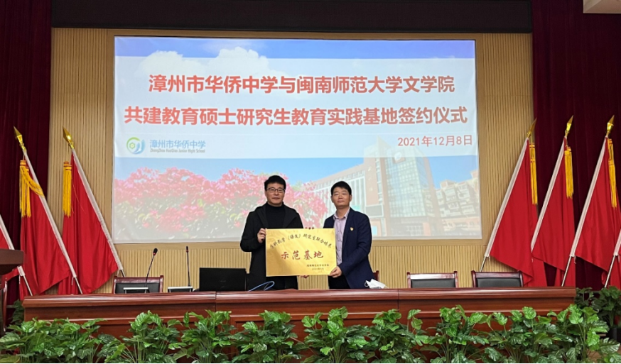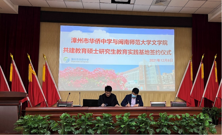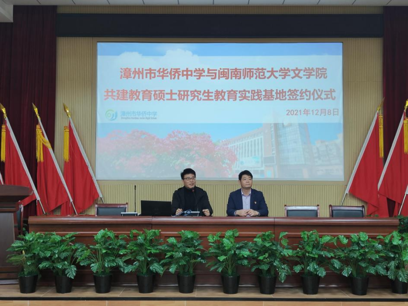 12月8日下午,学科教学(语文)研究生联合培养示范基地签约及授牌仪式暨2020级学科教学(语文)研究生实习汇报会在漳州市华侨中学举行。太阳成城集团tyc234cc副院长李新东、学科教学(语文)学科负责人代顺丽教授,漳州市华侨中学校长林东兴、教研室主任黄向阳及实习指导老师、实习生出席本次仪式,太阳成城集团tyc234cc2021级学科教学(语文)95名学生参加仪式,仪式由教研室主任黄向阳主持。