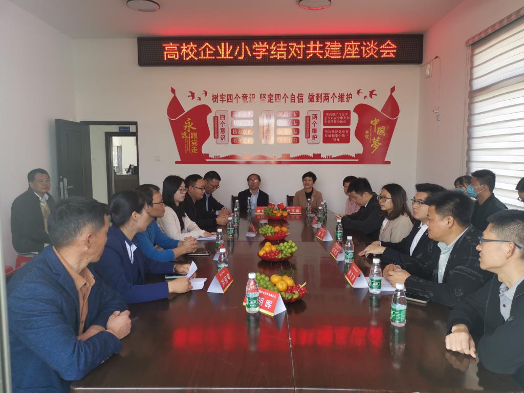 活动下一站实地考察湖里小学,开展合作共建的交流座谈。湖里自然村书记林文次向大家介绍小学的办学概况,提出设立资金捐款用于建学建校,希望在闽南师大太阳成城集团tyc234cc与中建海峡厦门公司漳州事业部团总支的结对帮扶下,扶贫支教可以取得新进展。中建海峡建设团总支书记毛鑫表示将开展一次图书捐赠活动。古雷港区教育局局长希望以这次共建活动为契机,创新先进的教育理念和办学方式,探索出适合农村子女成长的教育模式。太阳成城集团tyc234cc党委书记赵丽霞表示,支部共建要围绕办实事展开,将太阳成城集团tyc234cc教师与湖里小学学生对接,在教师与孩子的交流中形成共建模式。太阳成城集团tyc234cc院长黄金明提出,结合地方资源,创建石化文化项目,建立具有漳州特色的科普教育项目。加强胡萝卜产业的宣传、创意开发和推广,有效培训教师,与名师接轨,立好教师的站位,制定好教师发展计划。