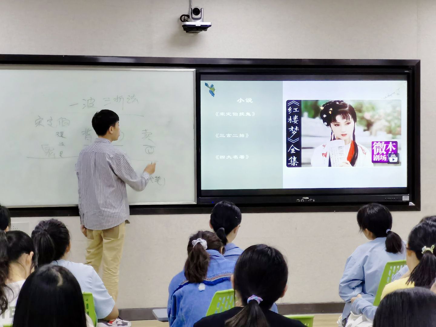 刘老师以“南京临安的瓦舍分布状况”开篇,讲述了说书的演变:从市井文学的广泛流传,到话本小说的出现、评书的相继问世,说书从一个民间活动一步步变成广为乐道的消遣方式。随后刘老师引出了说书的要点技巧:“详略得当,抓细节;主题鲜明,抓矛盾;逻辑清晰,抓线索”,点出说书过程中要考虑受众群体,读懂此书,更要讲懂此书。说书应从六个方面进行切入:时间上交代时代背景、地点上贯穿地理暗线、人物突出主题、起因追根溯源、经过情节曲折、结果点明主旨。刘老师用“一波三折法”“定向爆破法”“矛盾冲突法”等方法形象概括了如何讲好一本书,并列举了多个例子进行深入挖掘,层层剖析,使得这些说书技巧易于理解,深入人心。讲座的最后,刘老师对于学生们提出的问题逐一解答,为他们在讲书实践中遇到的困难指点迷津。