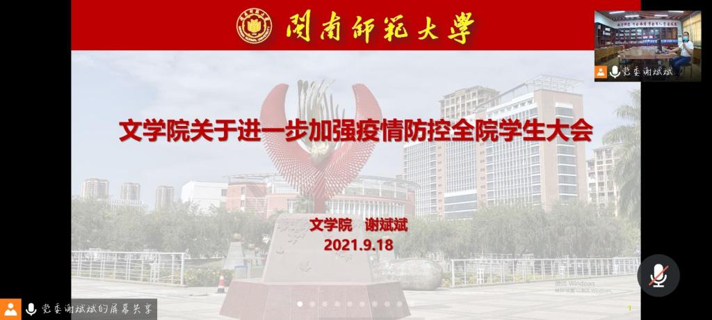 9月18日至19日两天,学院分年级、全覆盖地召开了进一步加强疫情防控全院学生视频会议。会议由党委副书记谢斌斌主讲,全体辅导员、全院学生参加。