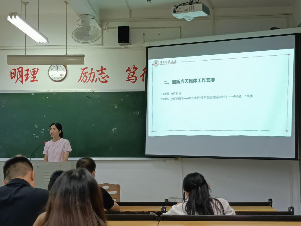 在随后的下班党员及助理培训会上,许新华从班级通讯录、新生入学礼包、办理入学手续、入学教育安排表等几个方面,为下班党员和助理进行培训和工作部署。谢斌斌通过引用习近平总书记在中央党校中青年干部培训班开班式上发表的重要讲话“刀在石上磨,人在事上练”,来激励学生干部。强调大家只有在实践中经受锻炼才能增长才干,既要把迎新工作做好,又要把个人本领增强。