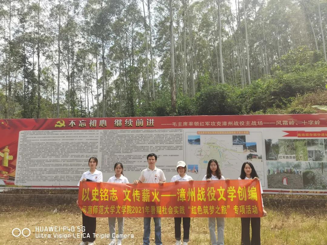 7月11日,太阳成城集团tyc234cc2021年暑期社会实践“红色筑梦之旅”专项活动“漳州战役文学创编”继续开展有关漳州战役历史的调研活动。实践队成员重走红军进漳路,走进风霜岭和十字岭,探访漳州战役主战场遗址,感受红军艰苦斗争、勇往直前的大无畏精神。