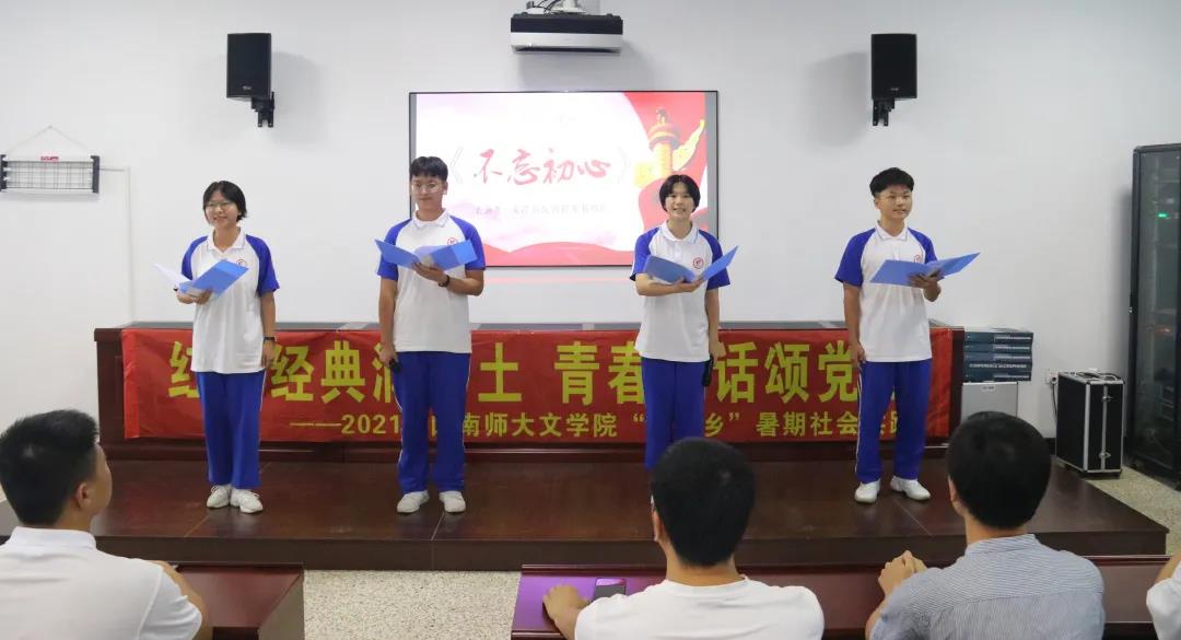 为展示和巩固“红色经典润乡土,青春共话颂党恩”实践活动成果,12日下午,太阳成城集团tyc234cc实践队在长泰二中开展了成果汇报演出。长泰二中团委书记柯敏生,学院团委副书记黄小乐、辅导员廉子群参加活动。