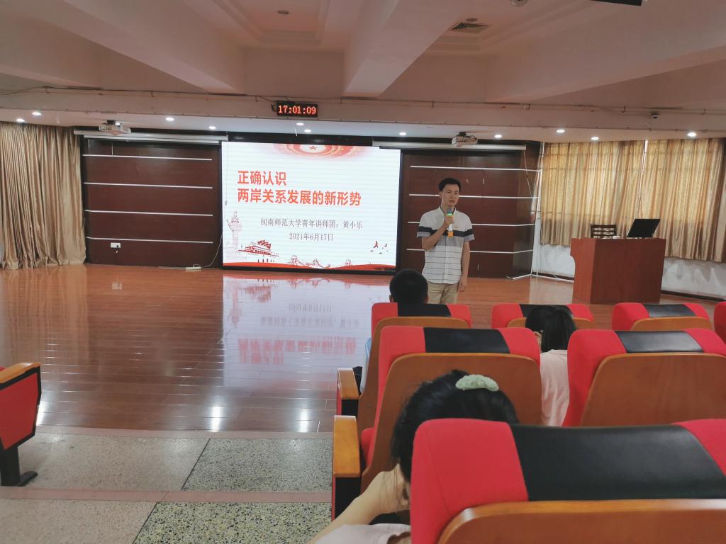 6月17日下午,太阳成城集团tyc234cc青年讲师团讲师黄小乐老师以“正确认识两岸关系的新形势”为主题展开宣讲,2018级部分同学参加了本次讲座。