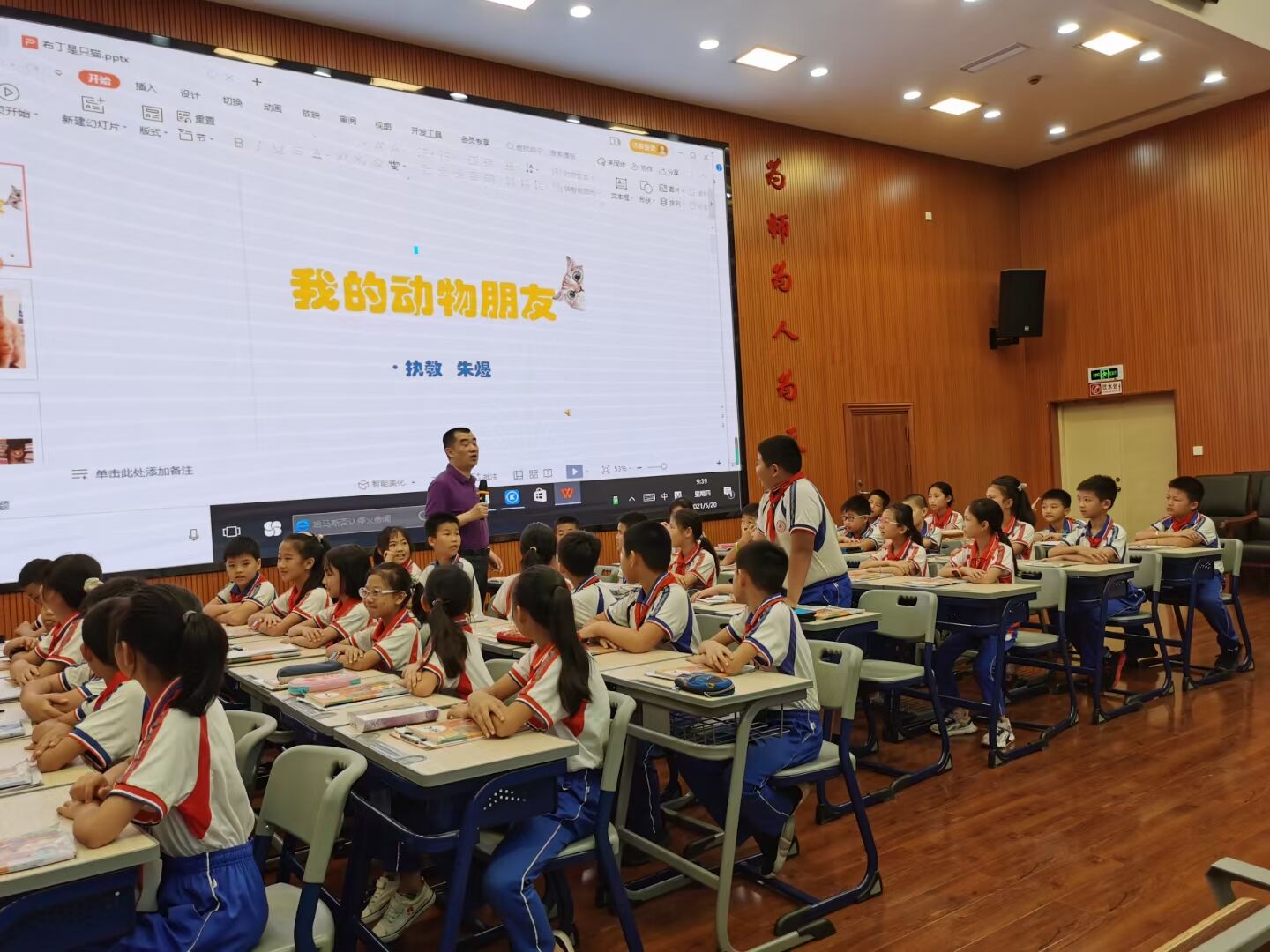 随后,华东师范大学出版社策划编辑朱永通主持了范秋潮老师《照亮生命的写作课》和朱煜老师《让课堂说话——朱煜作文教学策略》的新书发布会。全国小学写作教学名师朱煜老师为闽南师大漳州台商投资区附属小学四年级(3)班同学上了一堂精彩的作文示范课《我的动物朋友》。太阳成城集团tyc234cc硕士生导师、漳州市作文实践教学知名指导专家范秋潮副教授作了《写作教学难不难》讲座。从三个方面进行分析“写作教学难”的问题的对策。