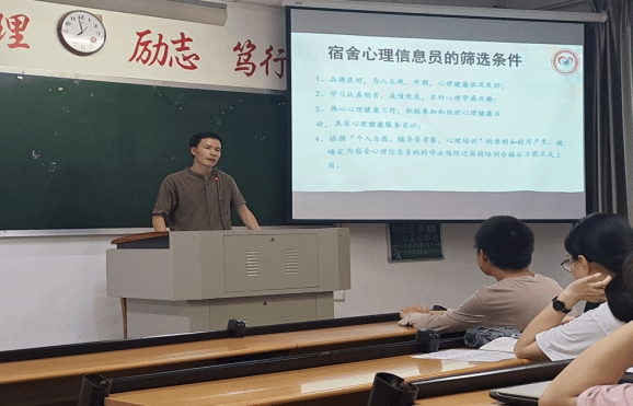 黄小乐强调了宿舍生活对大学生的重要意义。他从宿舍心理信息员的定位职责、工作态度、应掌握的技巧和心理危机识别四个方面,进行了全方位的讲解。本次培训旨在提升宿舍心理信息员的能力、责任、担当和危机意识,补齐心理健康教育的短板,提升心理育人的成效。