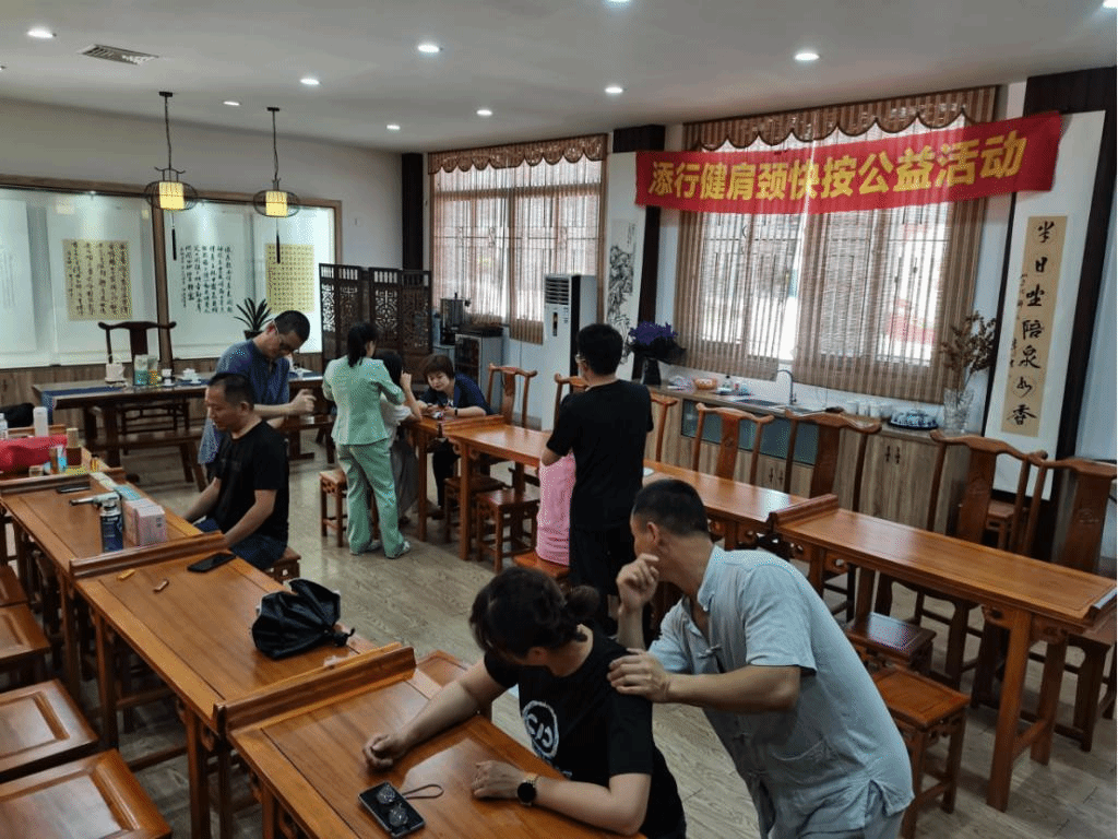 5月12日早上,添行健中医养生馆于博东114开展肩颈快按公益活动。调理师与各位老师一对一展开测试,询问日常坐姿,与老师们共同发现长期伏案造成的肩颈酸痛点,提供养生建议,并进行一次系统的肩颈推拿。通过调理肩颈,缓解了老师们长期伏案之劳。