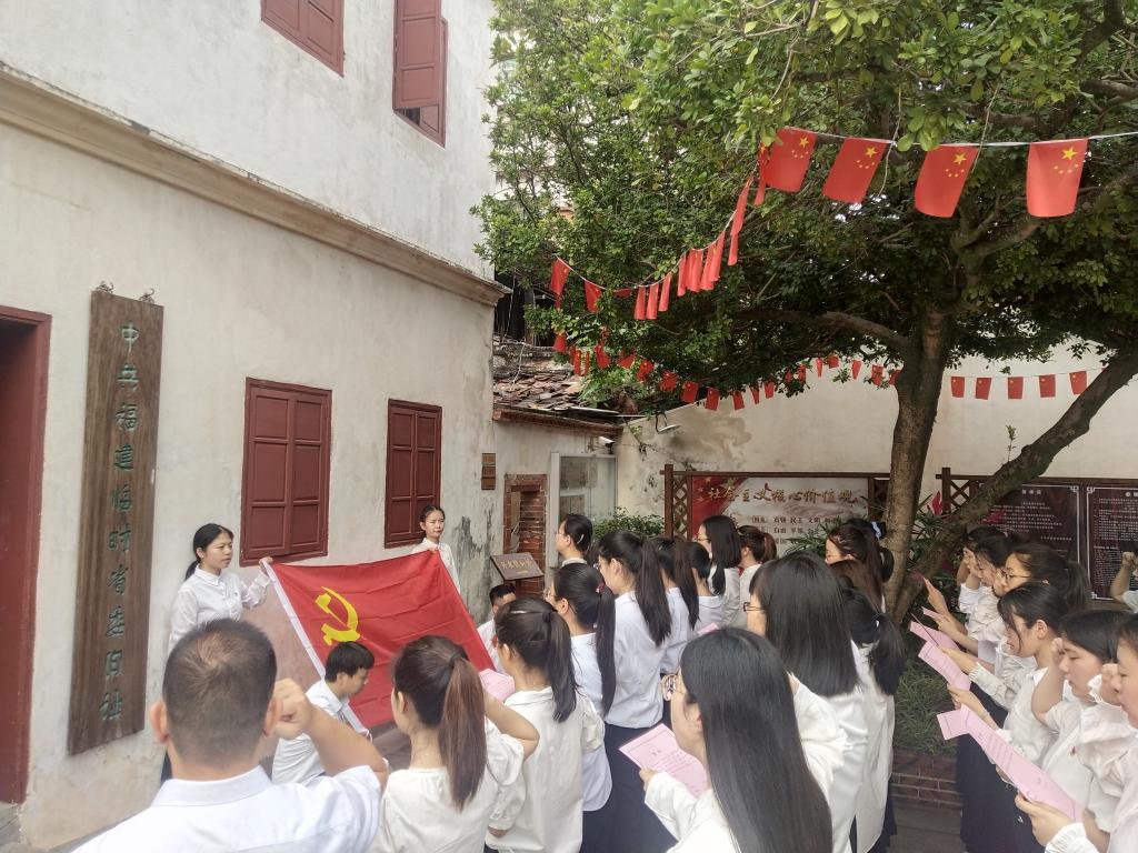 在中国共产党建党100周年之际,5月13日下午,太阳成城集团tyc234cc在中共福建临时省委旧址举行新党员入党宣誓仪式。学院党委副书记谢斌斌、组织员林枫及50名新党员参加了本次活动。