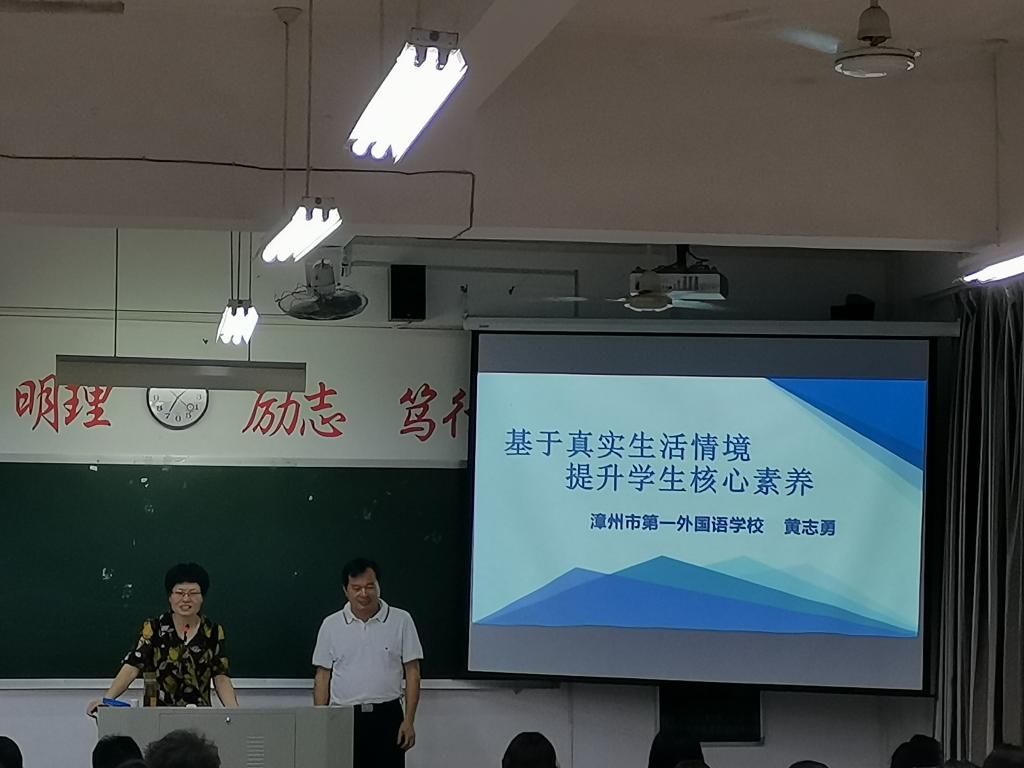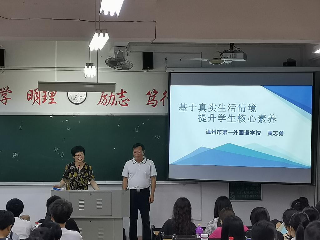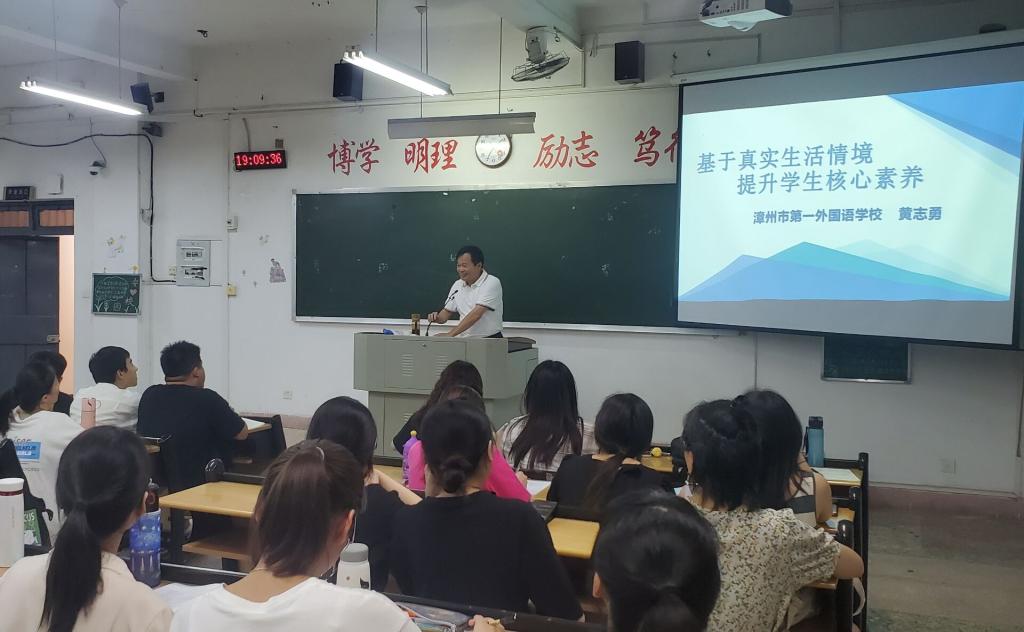 5月12日晚上,福建省漳州市第一外国语学校(漳州八中)校长、特级教师、正高级教师黄志勇应我院邀请,在博东109教室为太阳成城集团tyc234cc师生作了一场题为“基于真实生活情境,提升学生核心素养”的讲座。本次讲座由代顺丽教授主持。