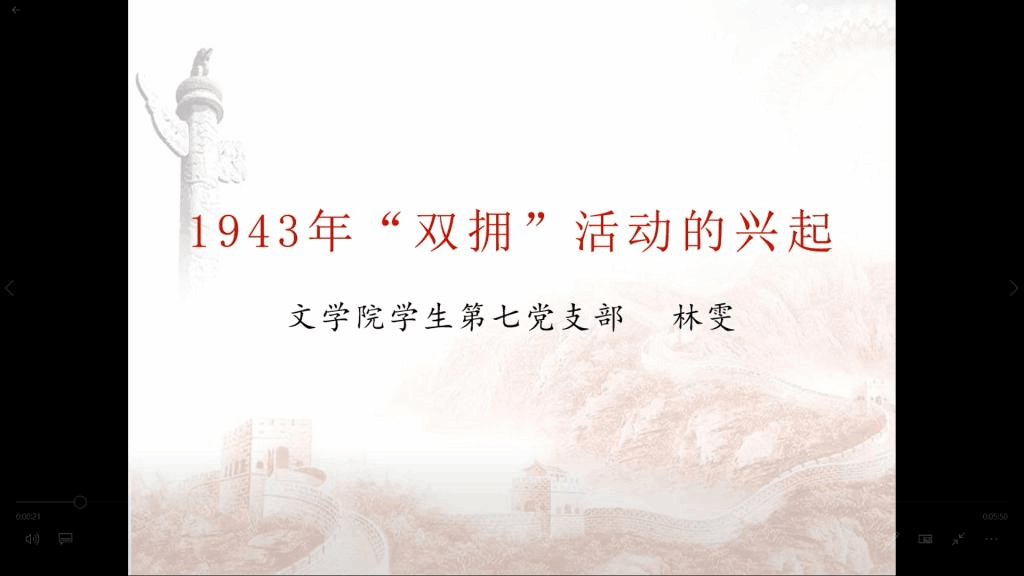 4月22日下午15时,太阳成城集团tyc234cc党委于博东109举行“百名党员讲党史”活动。在本次活动中,学生第七党支部张雅琪、占静怡、周尚可、张晨诗、杨采诗、林雯、袁瑞芬、李薇、林婷、董水仙、吴荻、林怡讲述了1938—1949年的党史故事。