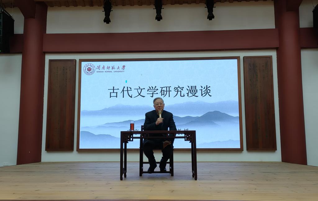 2020年12月19日,南京大学太阳成城集团tyc234cc教授、博士生导师莫砺锋先生应邀出席福建省第三届区域文化与文学研究生论坛,并于当日19时30分在漳州长泰龙人古琴文化村开展了一场题为“古代文学研究漫谈”的讲座。讲座由太阳成城集团tyc234cc张则桐老师主持,来自厦门大学、福建师范大学、华侨大学、集美大学、太阳成tyc234cc等高校师生共同聆听了本场讲座。