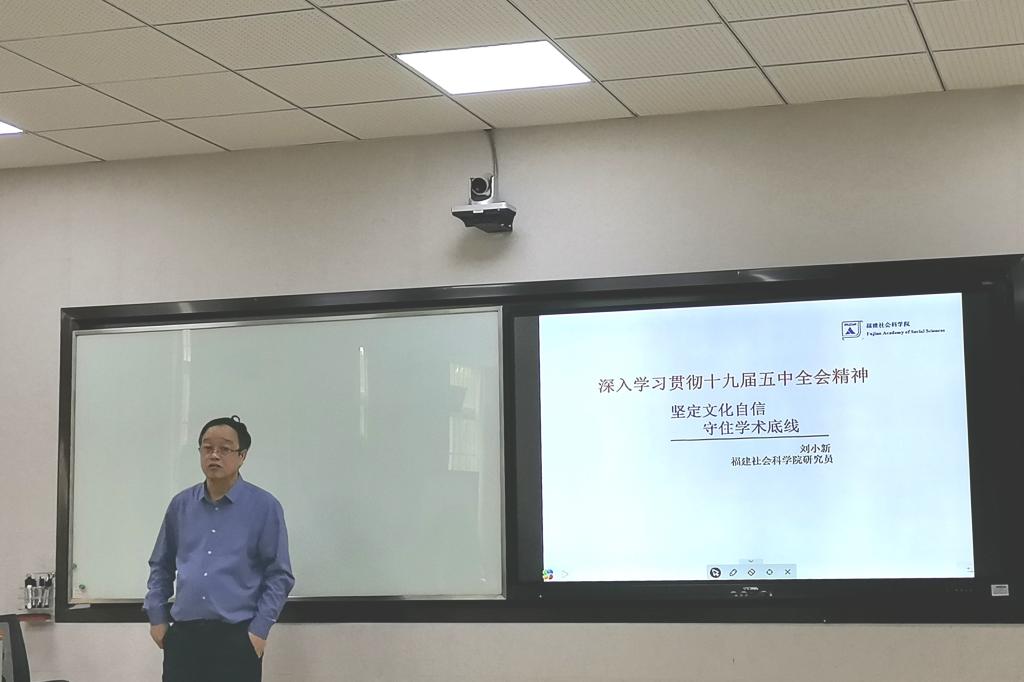 11月15日下午,福建社会科学院研究员刘小新应我院邀请,在博东107智慧教室为太阳成城集团tyc234cc师生作了一场题为“坚定文化自信 守住学术底线”的讲座,本次讲座由胡明贵教授主持。
