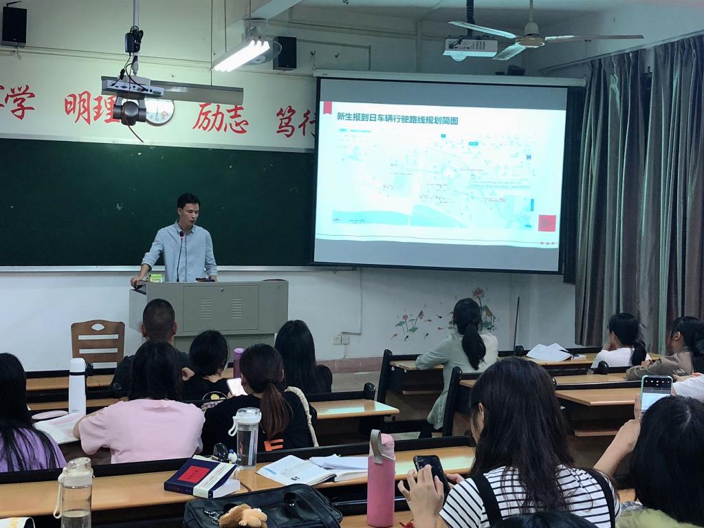 10月8日下午,迎新动员会在博东109召开。学院党委副书记谢斌斌、团委副书记黄小乐、全体辅导员、20级各班代班、班助以及主要学生干部参加了本次动员会。会上,黄小乐详细介绍2020级本科生迎新工作方案,布置人员分工,志愿者工作职责,物资准备,现场调度和注意事项等内容。谢斌斌强调迎新工作重点,要求各学生组织,各班级在工作中必须坚守岗位、热情服务、树立并维护良好形象,通过迎新志愿服务给新同学上好生动“第一课”。随后,黄小乐给下班党员培训,从如何做四讲四有的合格党员,要求下班党员要帮助2020级新同学“扣好人生第一颗纽扣”。