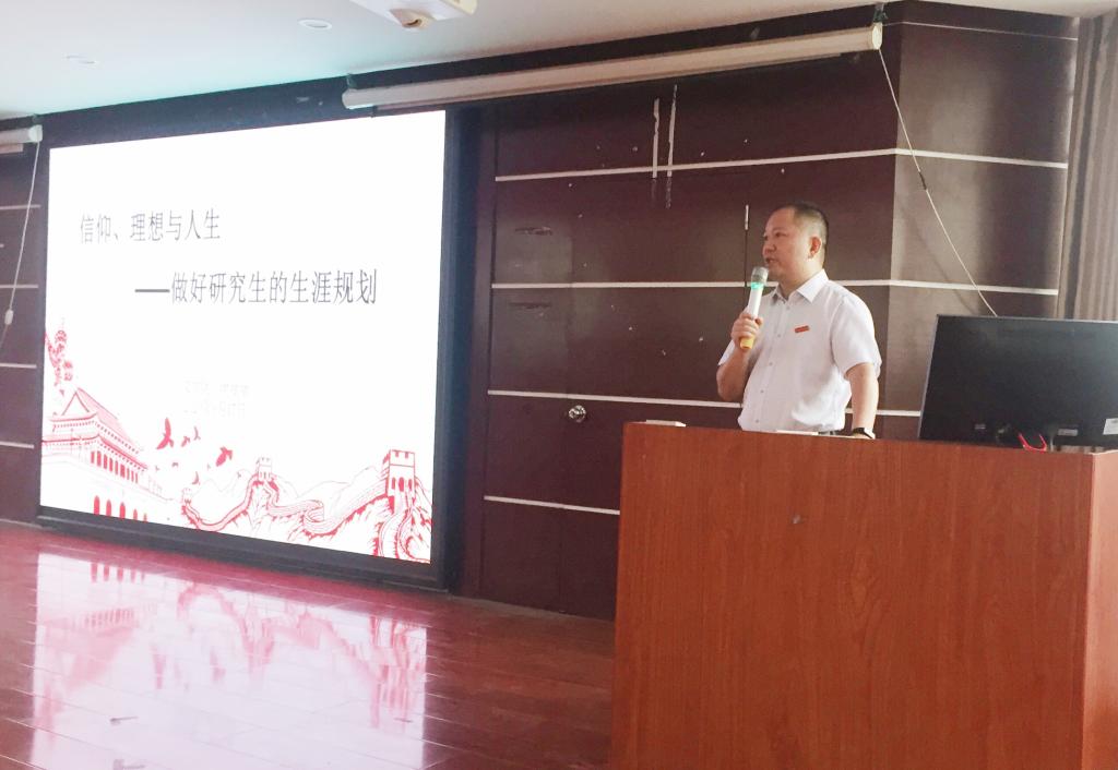 在第一场讲座中,谢斌斌围绕“信仰的力量”“理想的方向”“人生的三度”和“生涯规划”四个方面进行主题阐述。一、信仰的力量。他指出中国能在较短的时间内遏制住疫情的蔓延势头,离不开中国共产党的领导、中国特色社会主义制度的优势和人民群众的力量。同学们应该坚定正确的信仰,全面客观认识当代中国、看待外部世界。二、理想的方向。谢斌斌引用流沙河的《理想(节选)》一诗,激励同学们要正确认识自己的时代责任和历史使命,用中国梦激扬青春梦,鼓励同学们把个人的理想追求融入到国家和民族事业中,把小我融入到大我内,与时代、与国家同呼吸、共命运。三、人生的三度。“人生要有高度、深度和温度。”他鼓励同学们在思想上要提高站位,在学习中要勤奋刻苦,在工作中要扎实肯干,在生活中要与人为善。在读研期间不仅要钻研学术,也要培养待人接物的能力,让自己成为一个充满阳光、满是温暖的人。四、生涯规划。他勉励同学们作为一名研究生,应将眼光放长远,潜心钻研学术、将学业做精,争取发表高质量的论文。他还建议同学们在按时完成学业任务的同时,积极参加自己感兴趣的课程和讲座,在各类比赛活动中绽放自己的人生价值。此外,要保持一颗感恩的心,做一个有温度的人。
