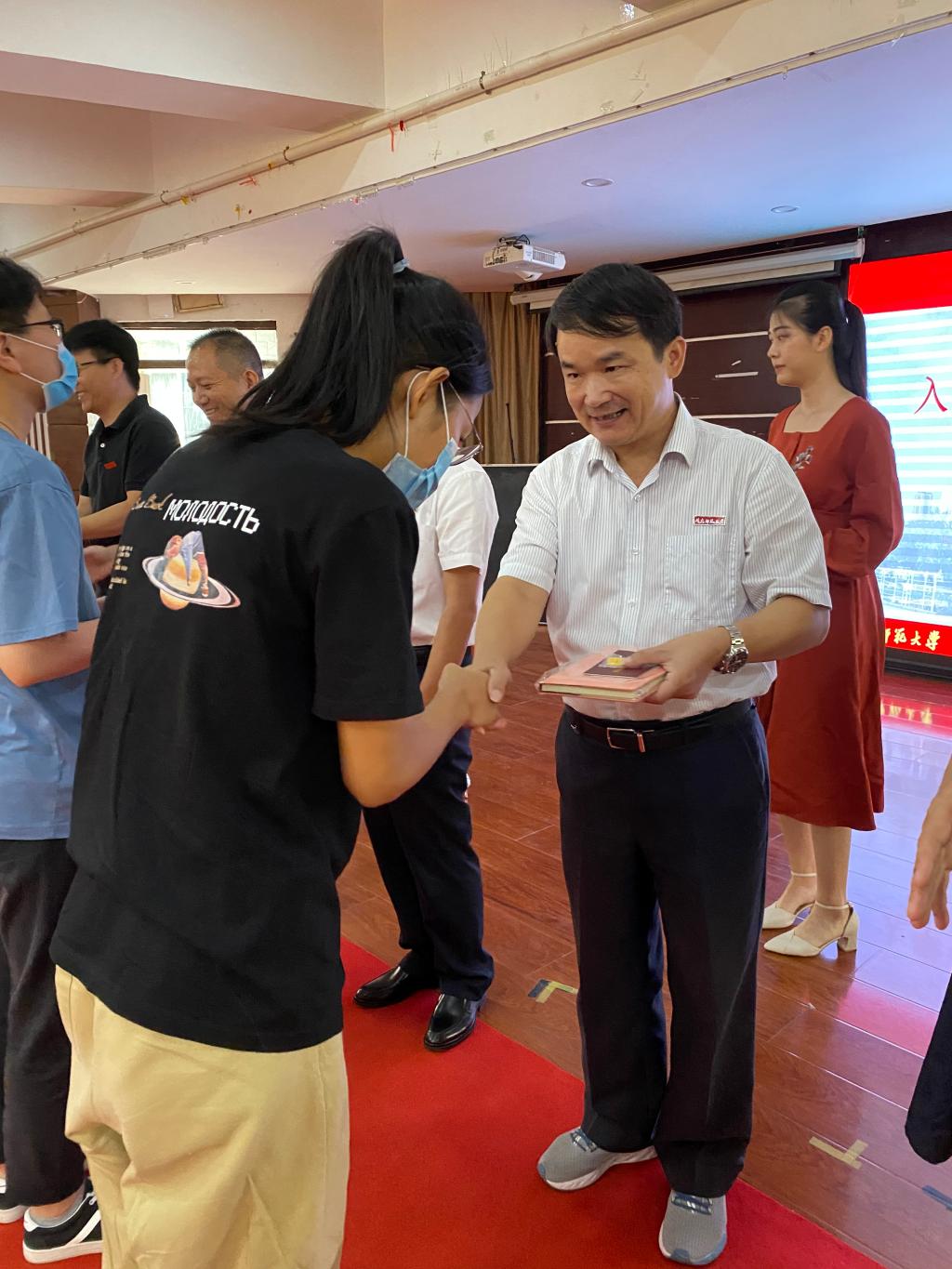开学典礼特别设置“入学式”环节。现场铺设红地毯,每位同学一个“入学礼包”,里面有校徽、研究生证和时光笔记。辅导员在现场进行第一次点名,同学们依次上台,从师长的手中接过“入学礼包”,正式加入太阳成城集团tyc234cc,开启研究生新征程。
