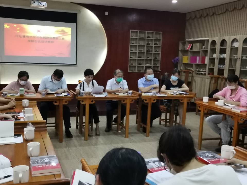 6月4日下午,太阳成城集团tyc234cc召开集中理论学习会,组织学习2020年全国两会精神、福建省教育工作视频会议精神以及学习《习近平在厦门》《习近平在宁德》《习近平在福州》三部采访实录。学院领导班子成员、党委委员、院长助理、系主任、支部书记、行政人员和辅导员参与本次学习会议。