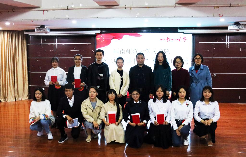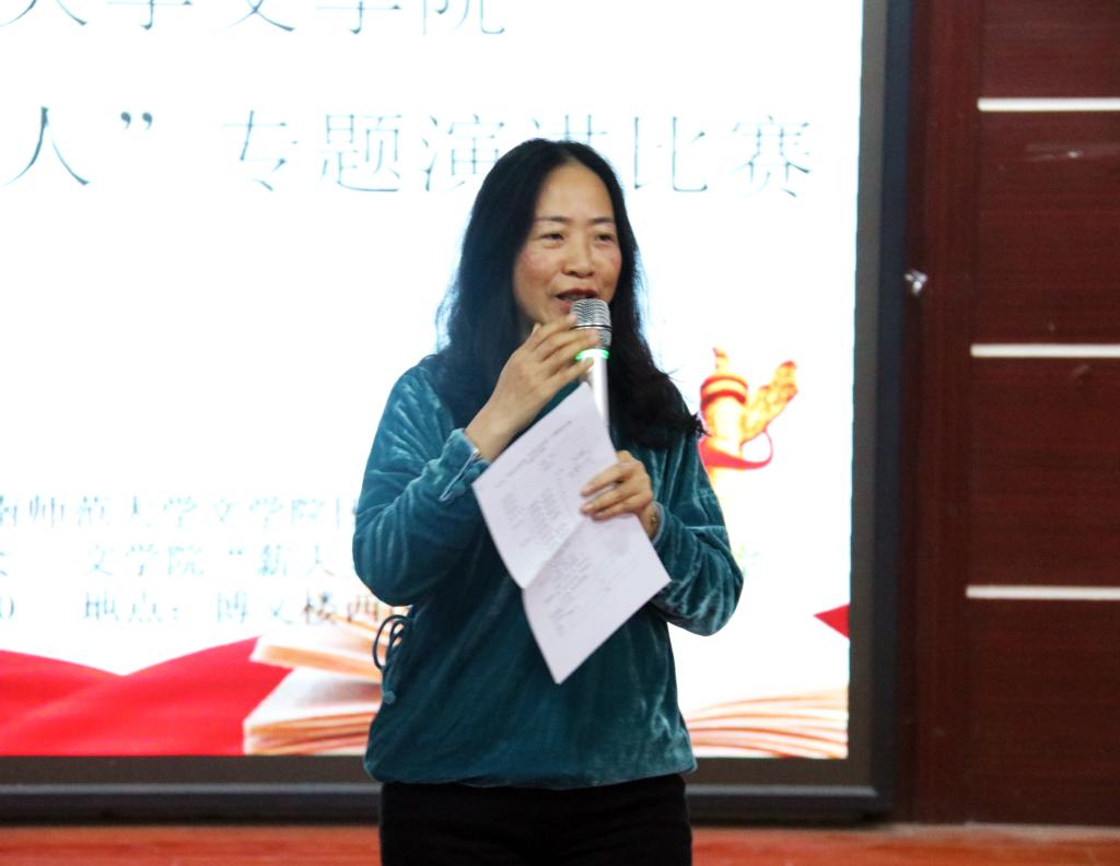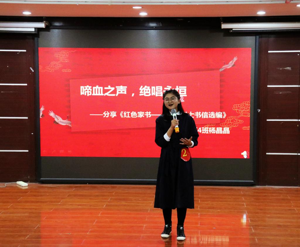 经过初赛层层选拔,共有10位选手进入决赛。选手选用《青春之歌》《小二黑结婚》《四世同堂》《红色家书》等中国现当代经典红色文学作品,依托红色经典解读,凝练红色精神,融入自身对经典的理解,娓娓道来革命背后鲜为人知的故事,声情并茂分享阅读经典后的感想。经过激烈角逐,杨晶晶演讲《红色家书——革命烈士书信选编》获一等奖,张雨翔、陈惠兰获二等奖,陈怡、倪秀玲、胡美玲获三等奖。赛后,邱春晖对本场比赛进行点评,指出优点与不足,勉励选手不断提高。