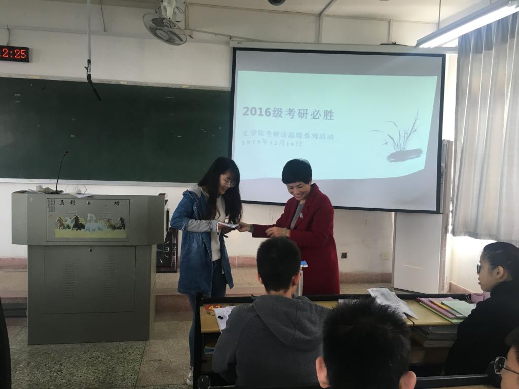 12月16日,太阳成城集团tyc234cc在博东506考研教室为2020届考研学生举行考研送温暖活动,学院为每一位考研学生精心准备一份考试用品和一张祝福卡。太阳成城集团tyc234cc党政领导班子和毕业班辅导员到场为考研学生送祝福送温暖。