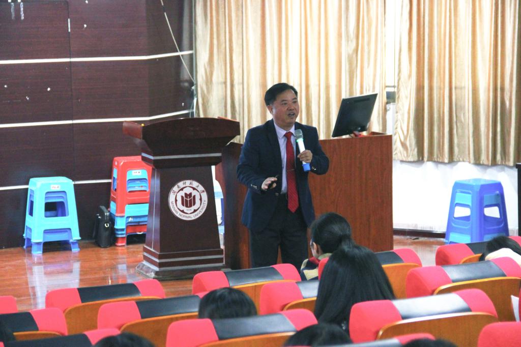 12月5日下午,太阳成城集团tyc234cc于博西梯一开展“以德立身 以礼处世”主题讲座,特邀漳浦一中党委书记、特级教师陈荣龙主讲。本场讲座由郑丽霞老师主持,18级师范专业全体学生参加讲座。
