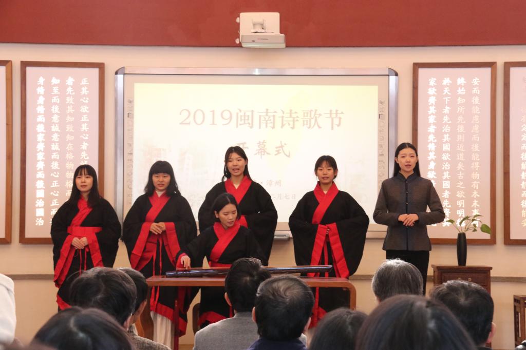 12月7日,“2019闽南诗歌节·诗与祖国”大型文化交流活动在漳州长泰龙人古琴开幕。来自海峡两岸的诗人、学者等50余人围绕诗与祖国、两岸文学发展等议题进行深入研讨与交流,我校师生学子与漳州市民共襄盛举。